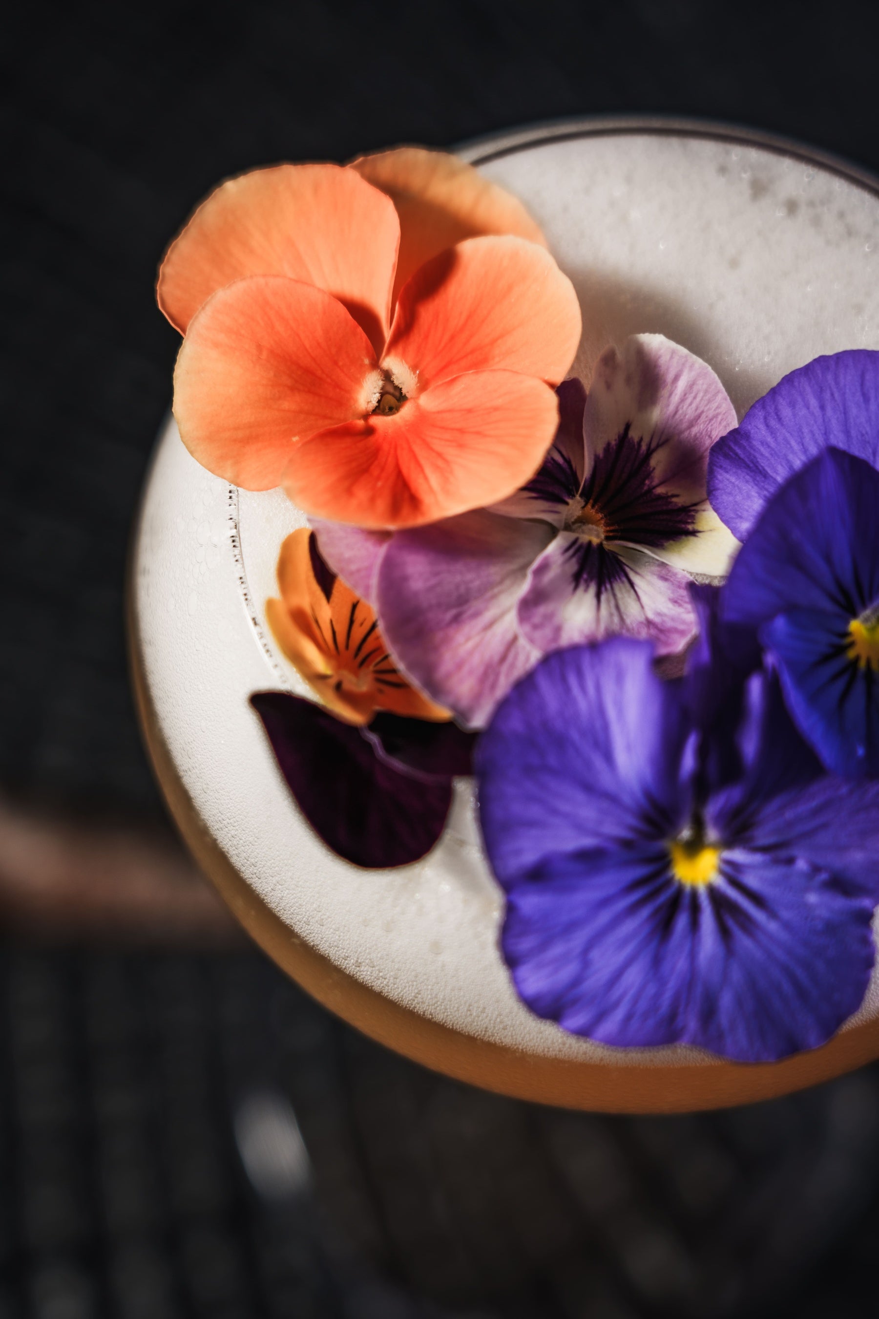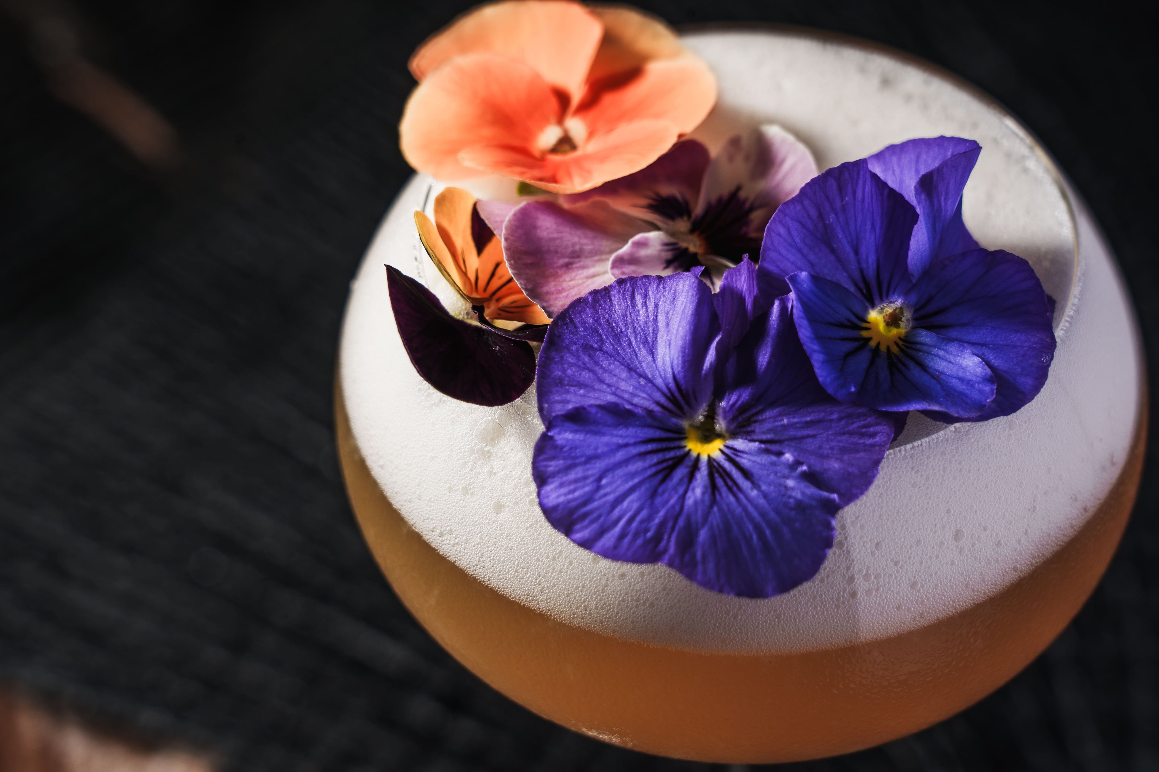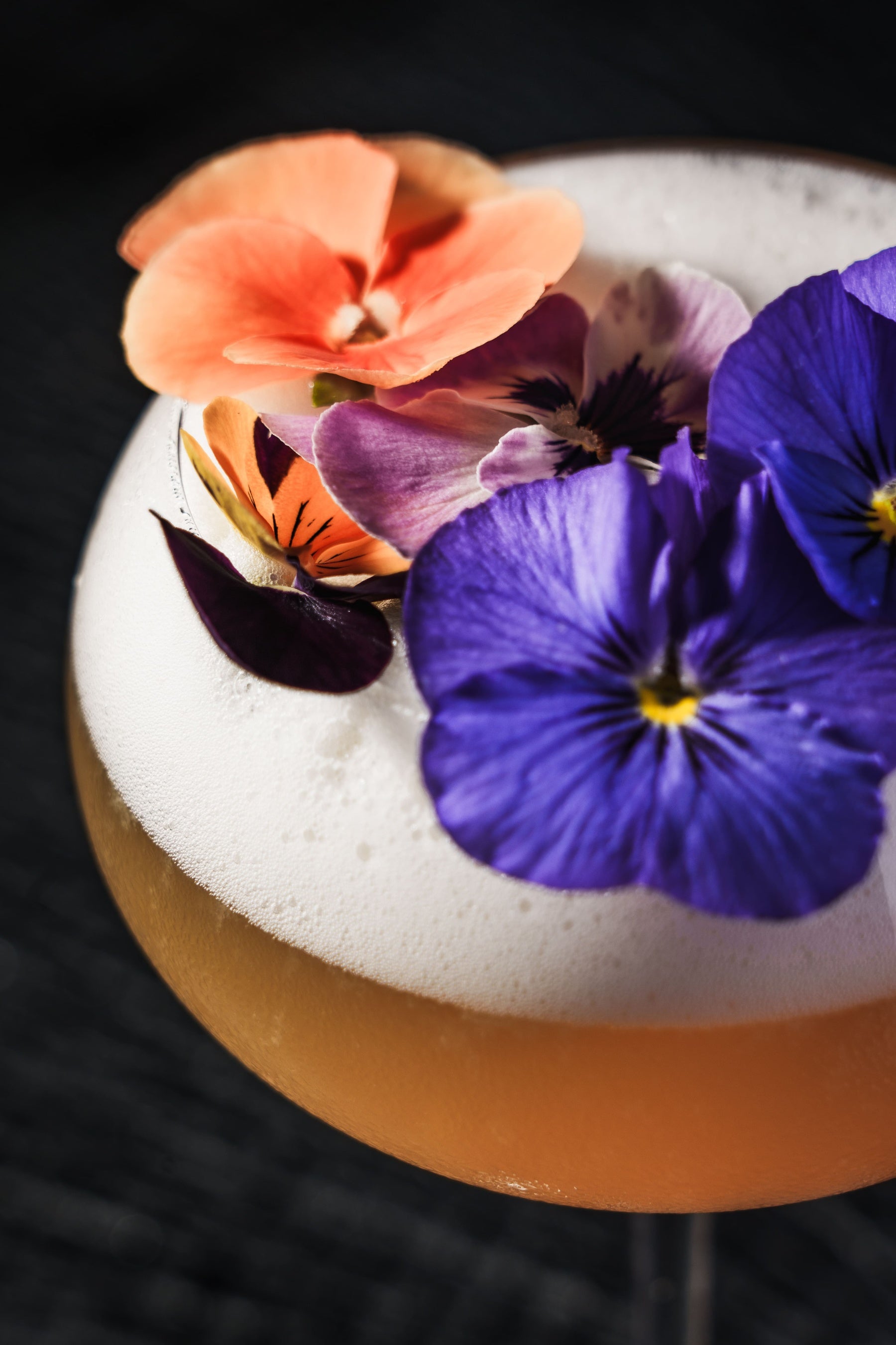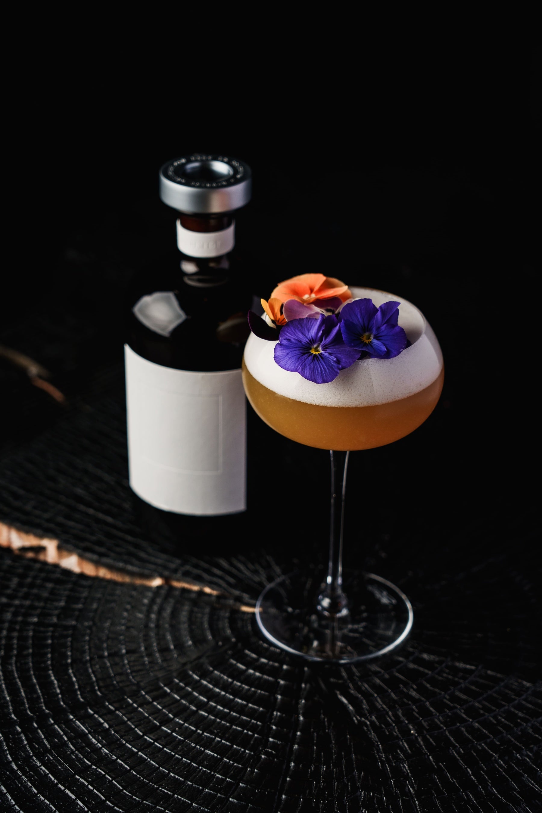 京都で採れたはちみつとレモン、焙じ茶のリキュール、そしてホテルのハーブガーデンから摘んだ花々。REISHI GIN,とともに花ひらく一杯は、甘酸っぱく、香り豊か。自然の調和と季節の彩りを感じる、華やかでフローラルなカクテルです。