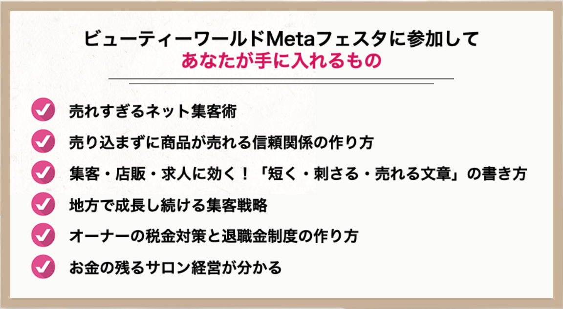 ビューティーワールドMetaフェスタでは美容室経営にかかわる様々なものが得られます。