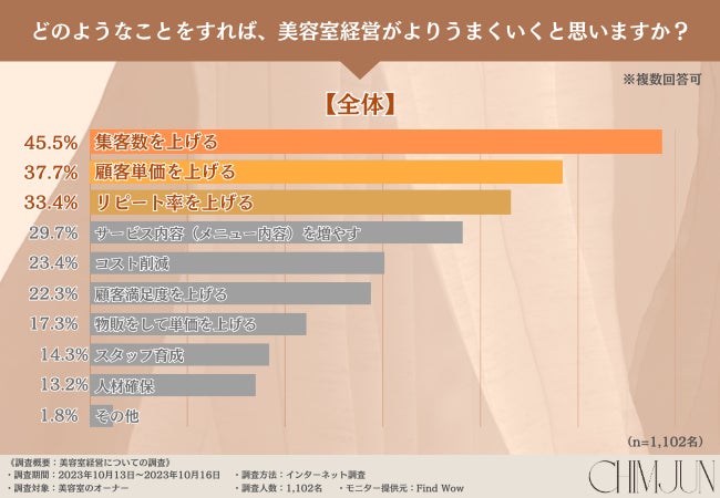 そこで今回、11月13日、14日にビューティワールドMetaフェスタ(https://bw-meta.com/2023meta/)を開催する株式会社 CHIMJUNは、全国の美容室のオーナーを対象に「美容室の経営」に関する調査を実施いたしました。