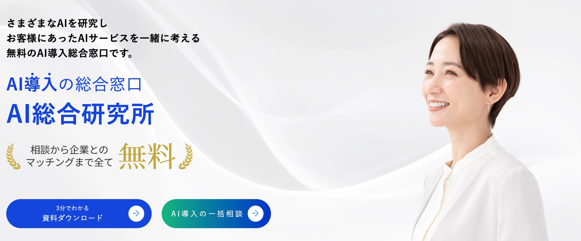 AI総合研究所は、さまざまなAIを研究、お客様にあったAIサービスを一緒に考える無料のAI導入総合相談窓口です。