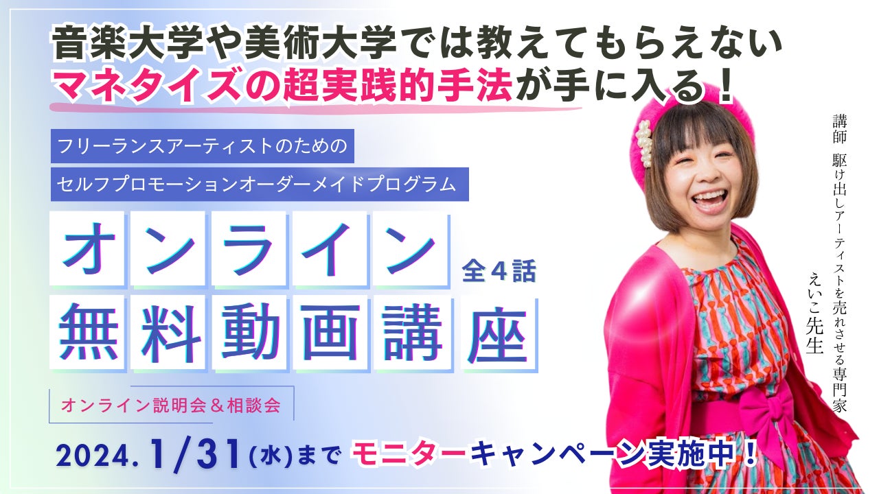 【集客・マネタイズに困っている駆け出しのアーティスト向け】オンライン×リアルマーケティングを活用した超実践ノウハウ「アーティストのためのセルフプロモーションオーダーメイドプログラム」をスタート。