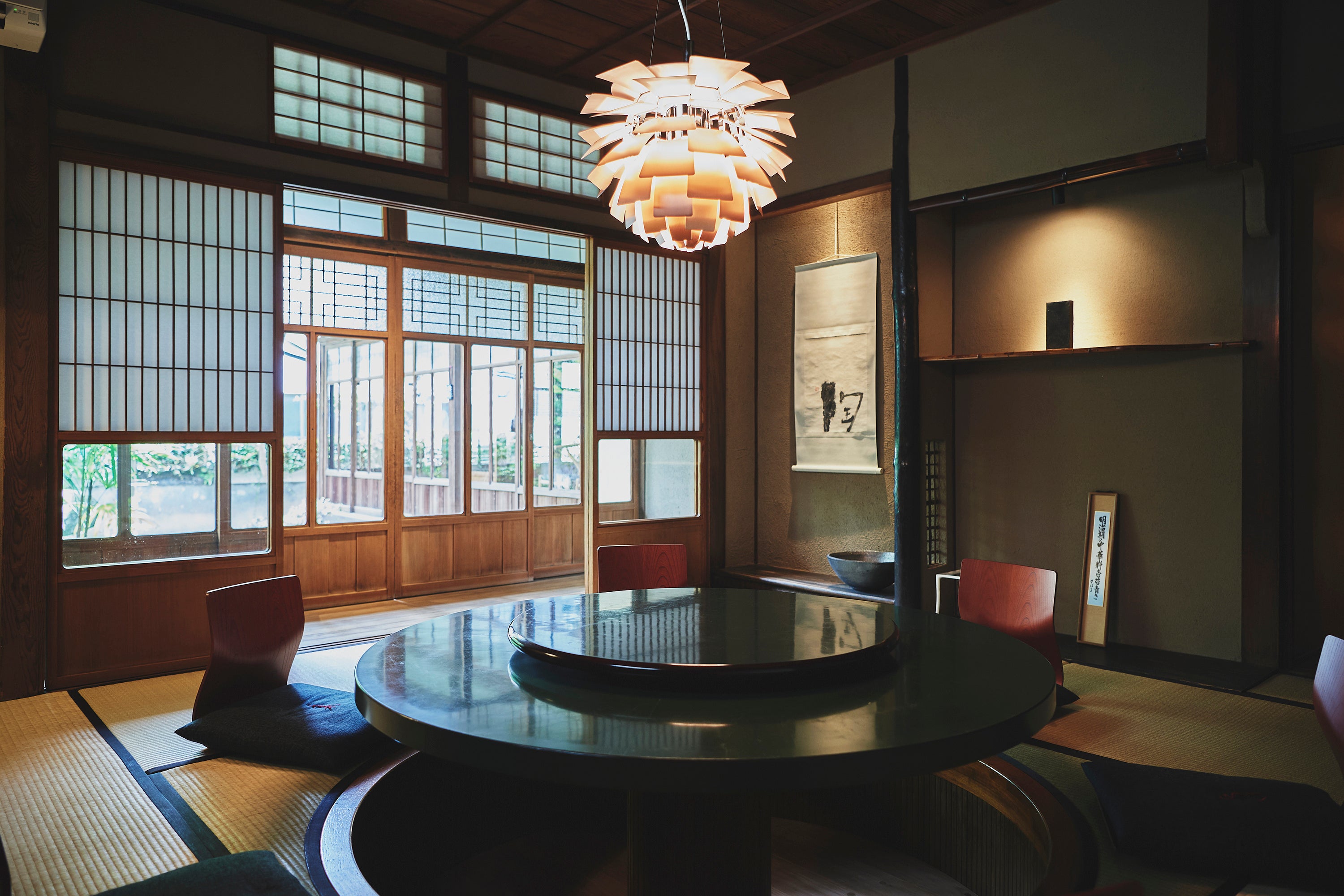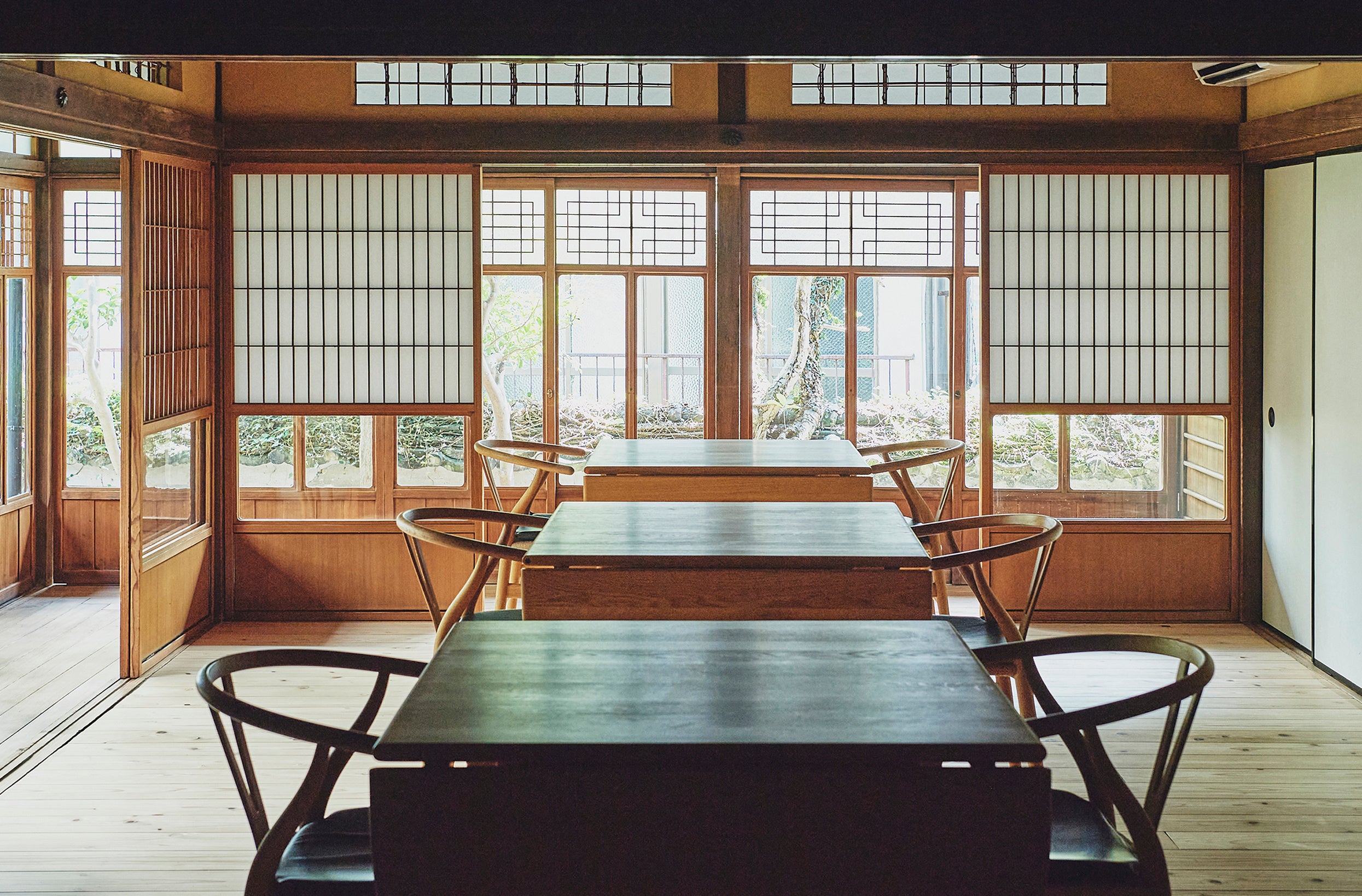 築約100年の和風建築を活かした、1日3組限定のオーベルジュ。周囲の環境や歴史と切れ目なく繋がるよう、空間には元来からの素材を活かしたリノベーションが行われています。
