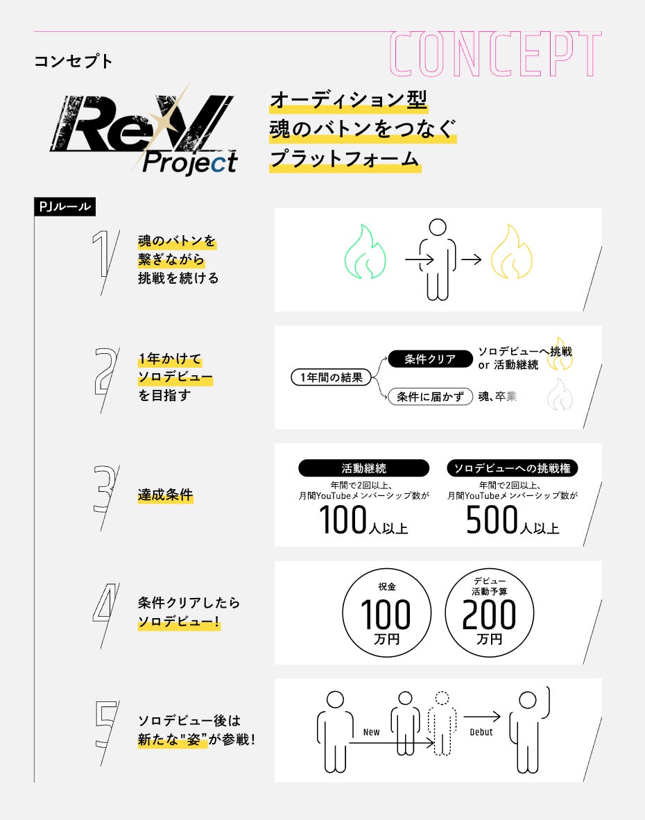 Re/V Projectは、“オーディション型 魂のバトンをつなぎ活動していくVTuberグループ”として、下記のルールに基づいて活動してまいります。