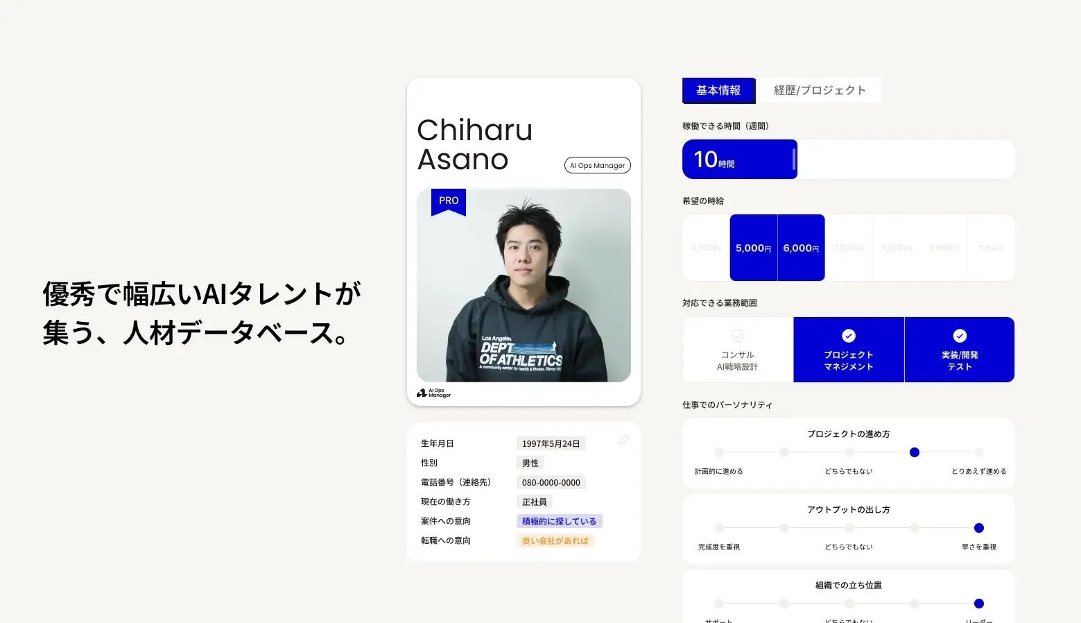 AI Ops Manager では、2026年内にAI人材の登録数を大幅に拡大し、企業のAI推進ニーズに即座に対応できる体制を構築してまいります。企業とAI人材の最適なマッチングを通じて、日本のAIネイティブ化を加速します。