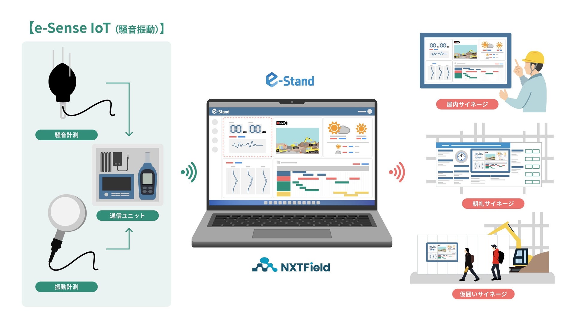 株式会社ネクストフィールド(本社:東京都渋谷区、代表取締役社長:大堀 裕康)は、建設現場のDX推進を目指し、建設現場向けダッシュボードサービス「e-Stand※」を開発・提供しています。この度、建設現場の騒音計・振動計の取得データをクラウドへ送信し、「e-Stand」に表示する騒音振動ユニット「e-Sense IoT (騒音振動)」を提供開始しました。