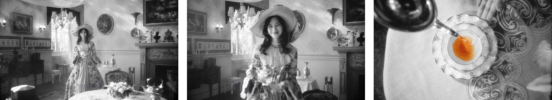 アフタヌーンティーを広めたと言われるアンナ・マリアに扮した中条さんが淹れた紅茶のティーカップは、明治時代の社交場の飲み物に、そして1904年に行われたセントルイス万国博覧会でのアイスティーに、さらには大正時代の喫茶店でカップルが嗜むミルクティーへと、時代の変遷と共に形を変えながら移ろい変わっていきます。紅茶の周りでは、どの時代も変わらず人々の笑顔とさまざまな会話が繰り広げられており、人と人とをつなぐ大切な役割を果たしているのでした。