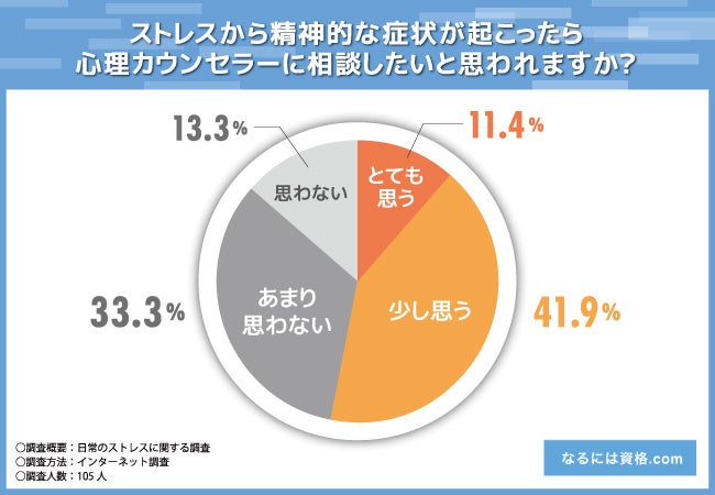 ストレスで症状が出た際に心理カウンセラーに相談したい方は53.3%の結果に