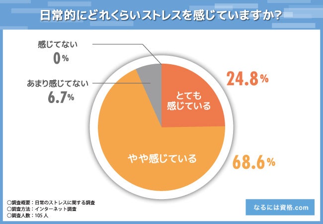 そこで今回、なるには資格.com(https://www.naritaijob.com/)(株式会社Nanea 本社:福岡県、代表取締役:石丸大輔)は、全国20〜60代の男女105名を対象に「日常のストレス」に関するアンケートを実施しました。