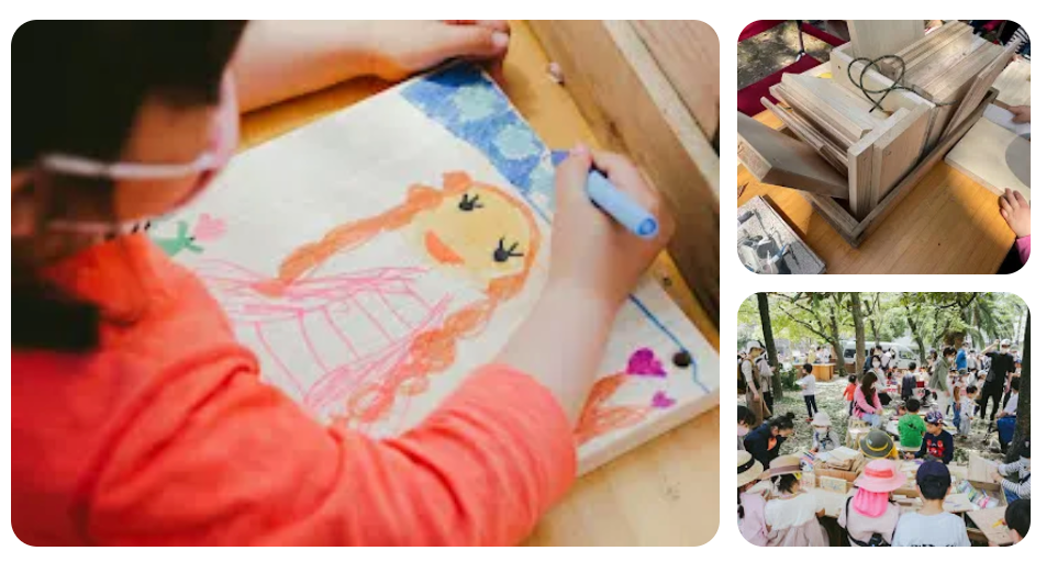 田中工務店が建てる木の家から出た端材を使ったお絵描き。