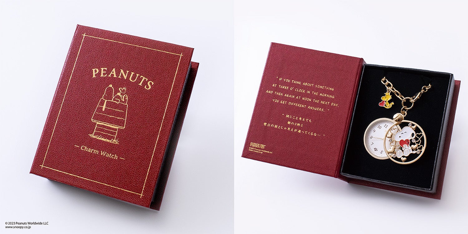 中を開けると、時間にまつわるスヌーピーの名言が載っていて、まるで絵本のような可愛らしいボックスになっています。