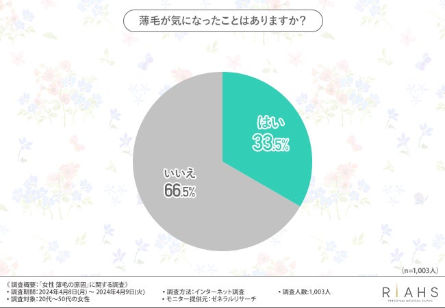 はじめに、「薄毛が気になったことはありますか?」と質問したところ、約3割の方が『はい(33.5%)』と回答しました。
