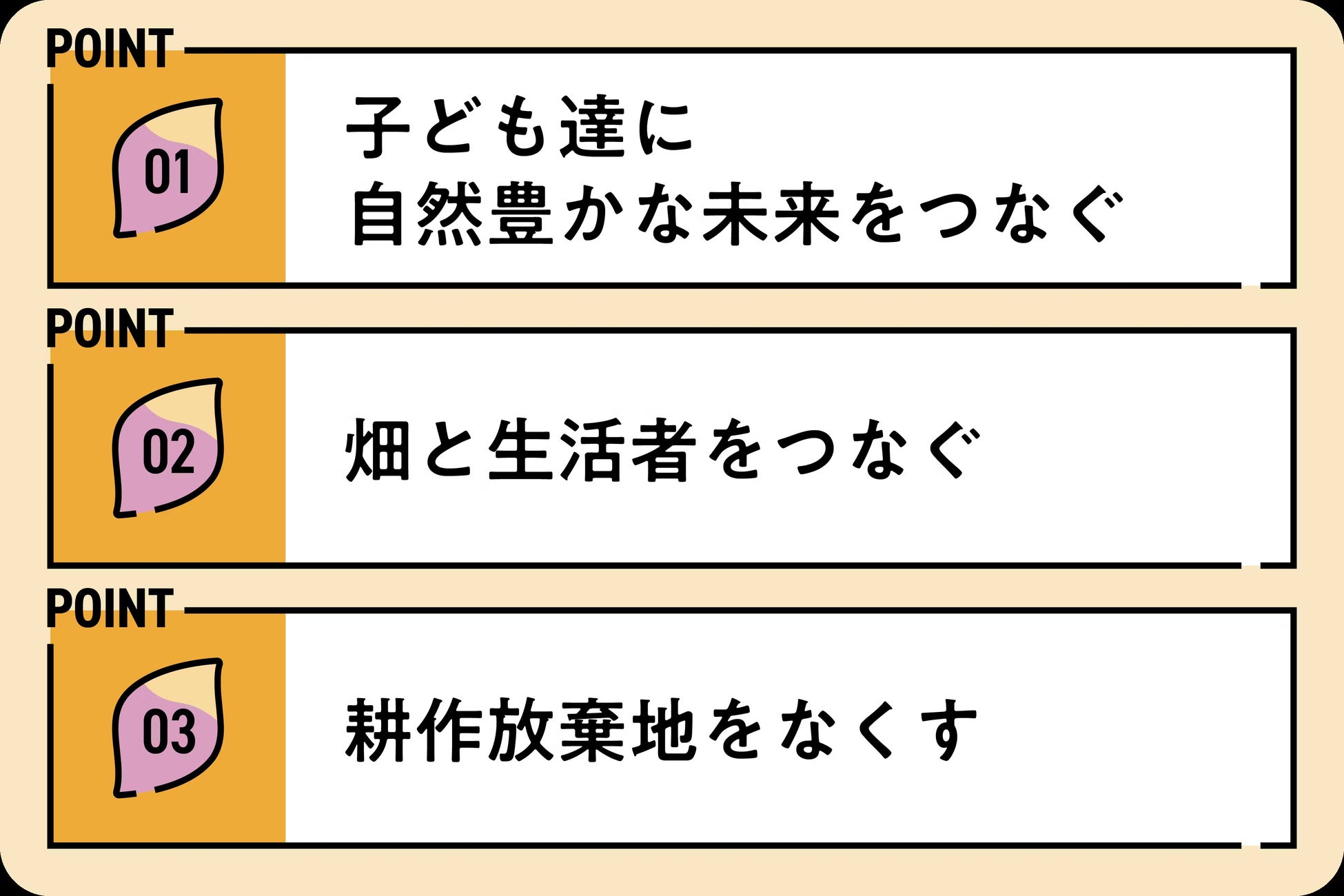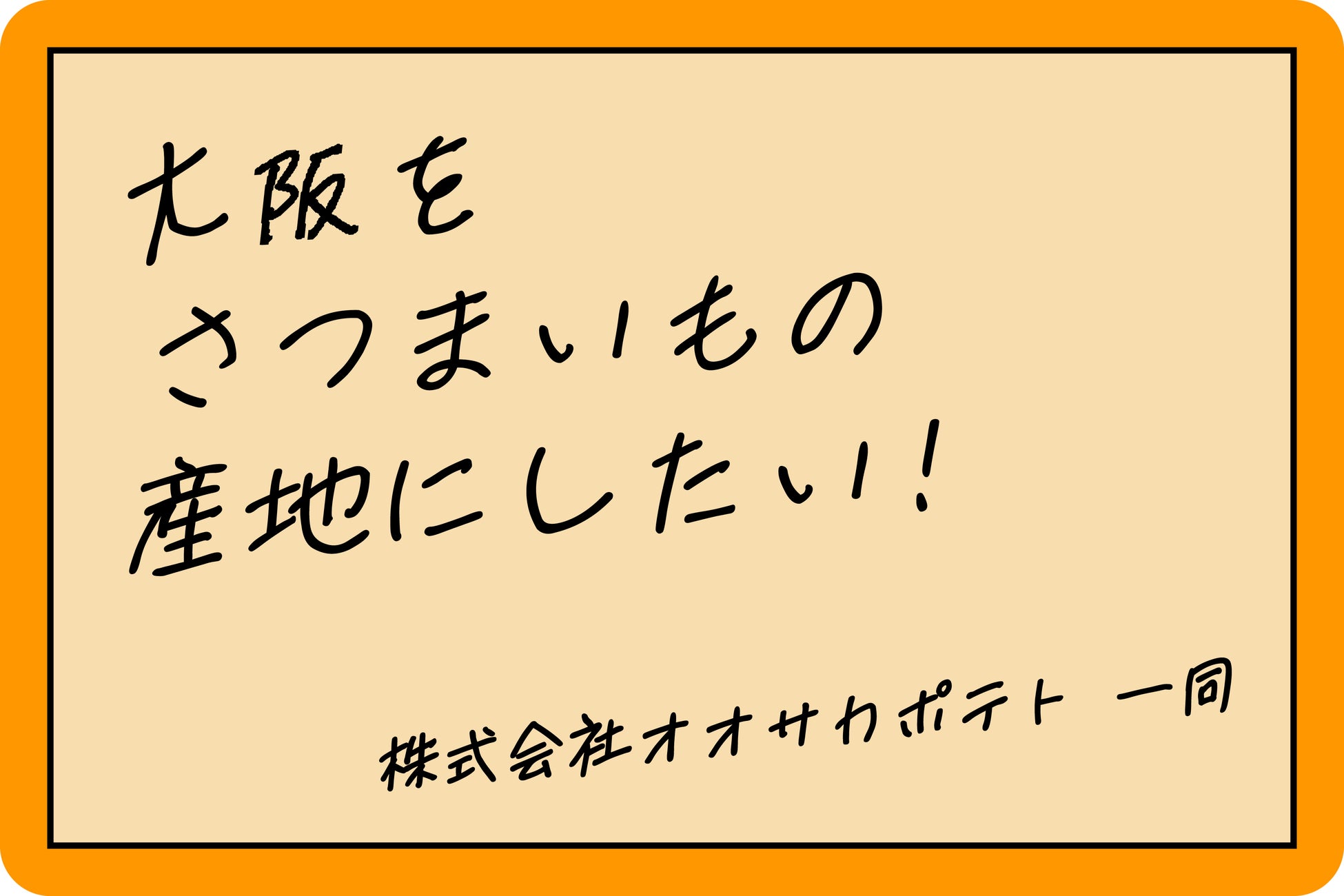 私たちオオサカポテトは創業当初に掲げた3つの未来を実現するため、『大阪をさつまいもの産地へ』というスローガンのもと農業に取り組んでいます。