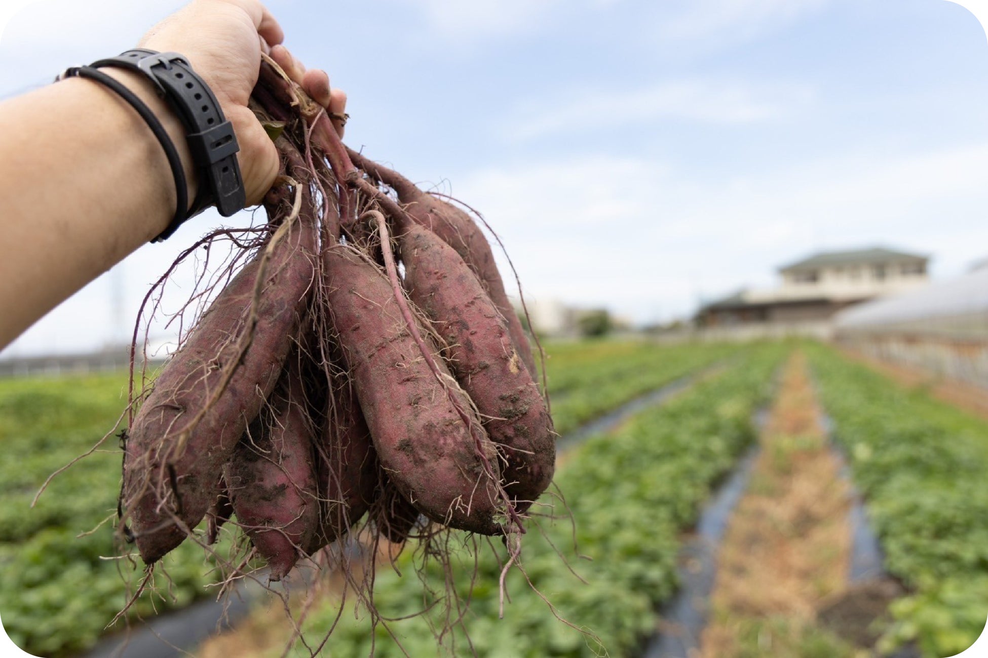 私たちが栽培するさつまいもの名前は『夢シルク』と言います。上品な甘みととろけるような滑らかな口当たりが人気の“シルクスイート”という品種と、若手農家の“夢”から生まれたさつまいも、という背景から『夢シルク』という名前を付けました。
