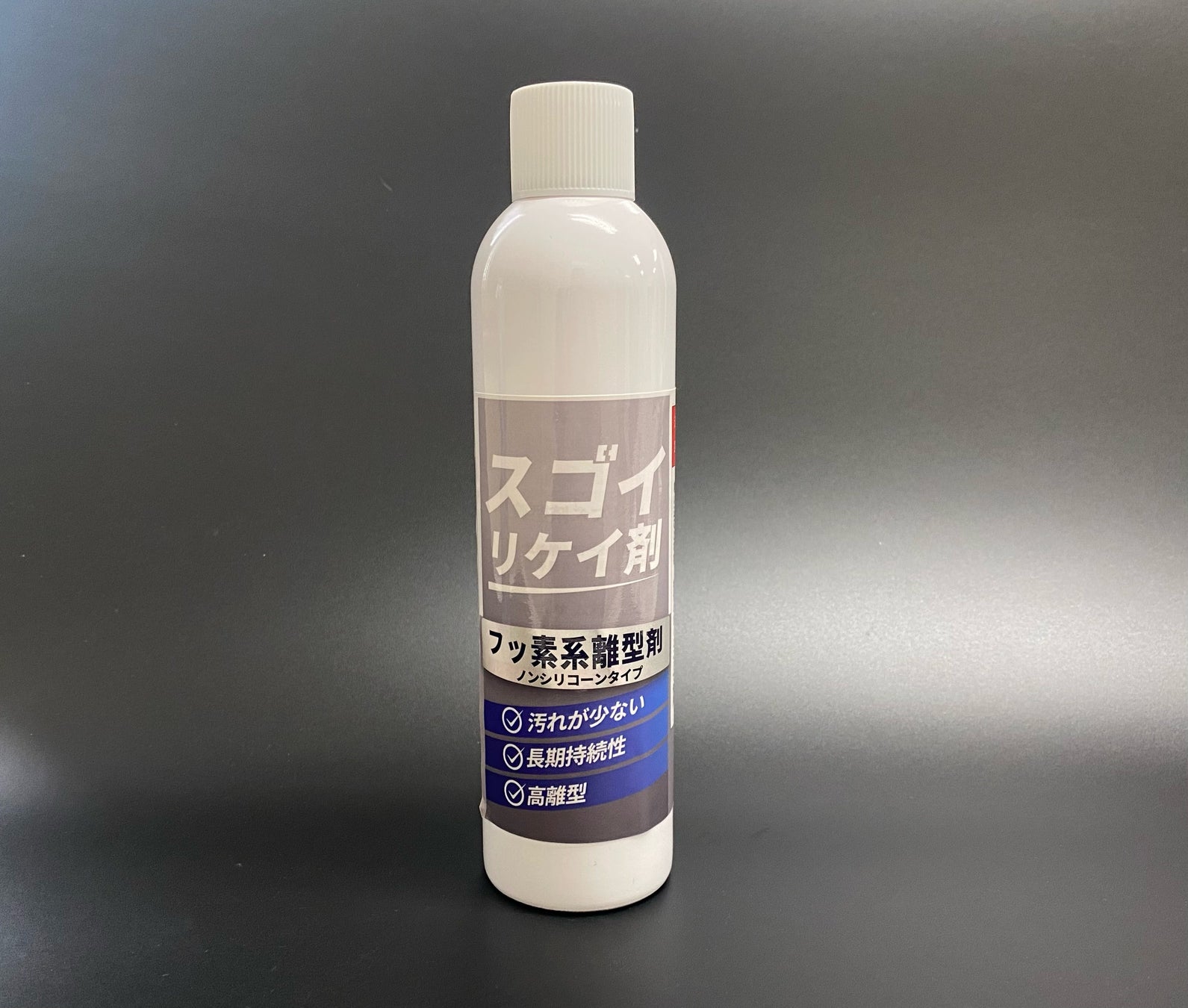 「スゴイリケイ剤」は弊社独自のフッ素成分を含む、エアゾールタイプのフッ素系離型剤です。エアゾールタイプのため希釈不要で手軽に使用でき、簡易塗布を実現しました。