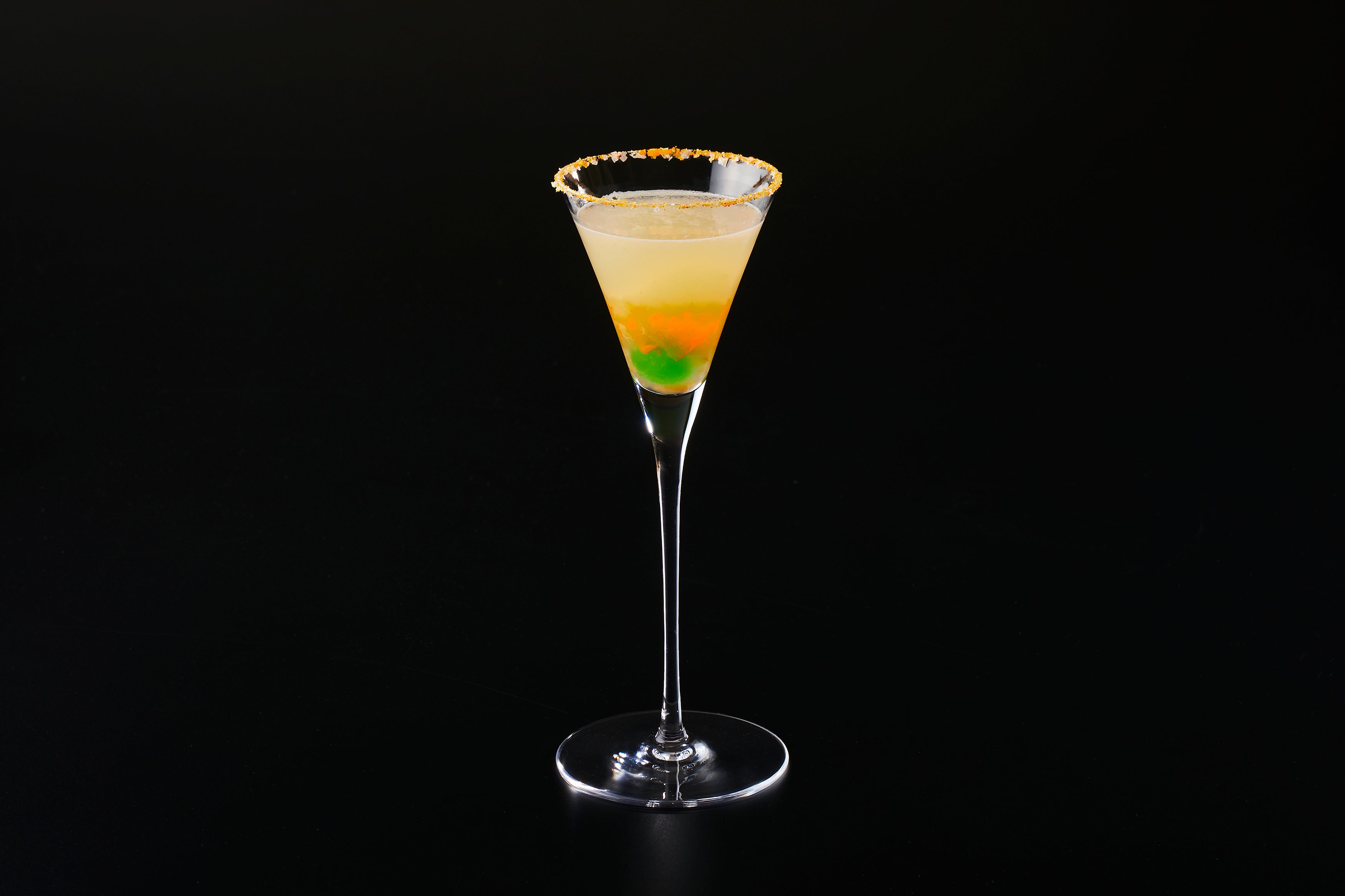 日向夏のマルゲリータ。さわやかな夏蜜柑塩で切れの良いショートカクテルに。グラスの底にひそんだマーマーレードがアクセントです。