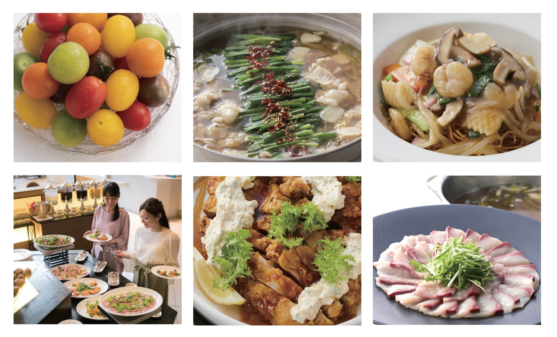宮崎県「チキン南蛮」、長崎県「皿うどん」(平日ランチ)、「もつ鍋」をはじめ九州各地の郷土料理や名物料理、黒瀬ブリ(鹿児島県)や紅ゴチ(長崎県)、宝石とまと(熊本県)など九州産の食材を使った限定メニューの数々が登場いたします。