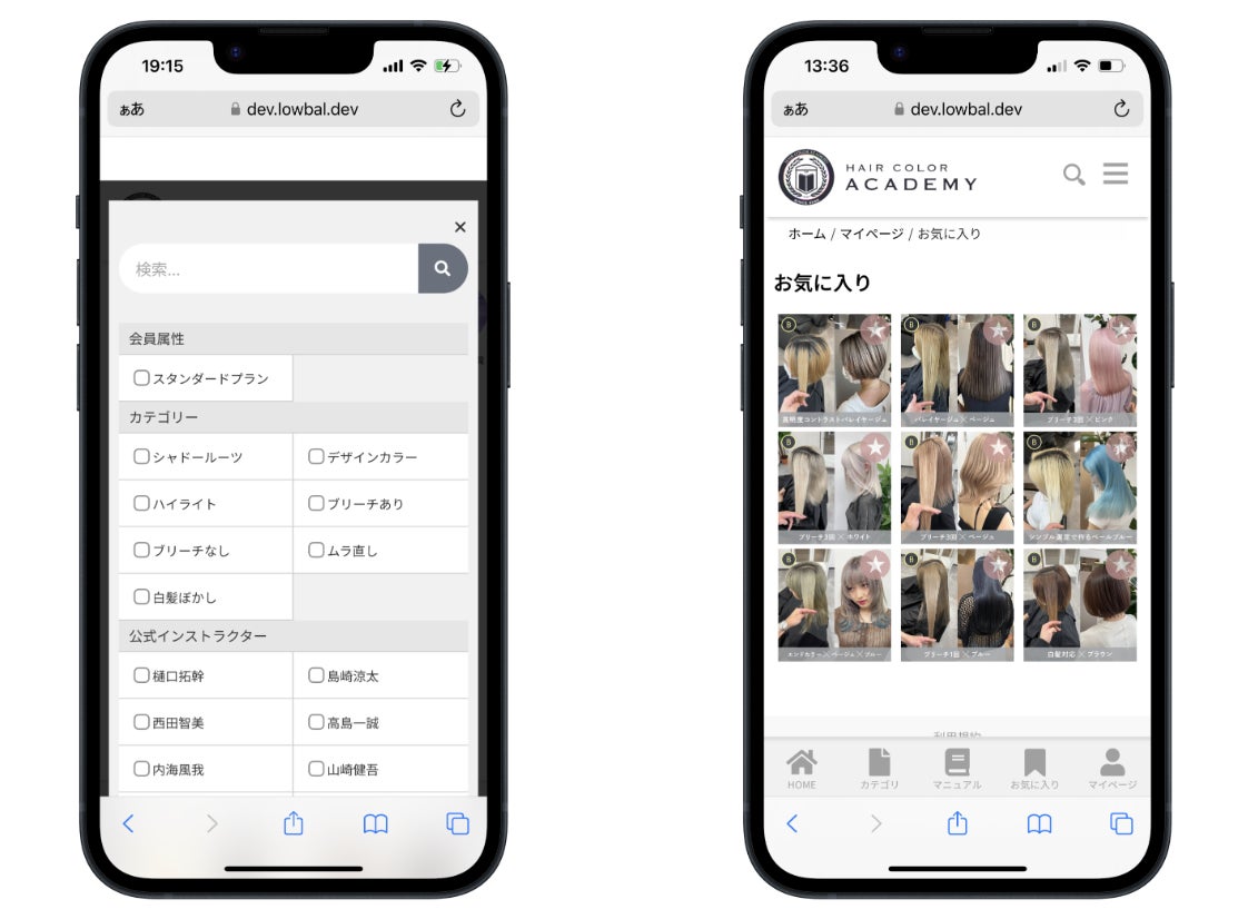 また、美容師様のサロンワークでご活用いただける「検索機能」と「お気に入り機能」を追加することで、HAIR COLOR ACADEMYでの学びをアウトプットし、より質の高いヘアカラーをお客様に提供できるようになります。