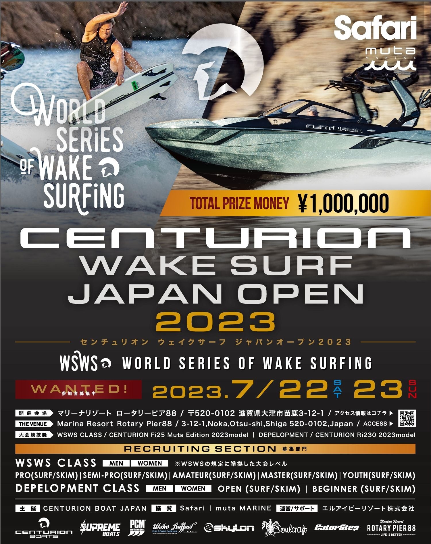 琵琶湖にあるマリーナリゾート“ロータリーピア88”にて、CENTURION BOAT JAPAN主催の“CENTURION WAKE SURF JAPAN OPEN 2023”が7月22日~23日の2日間で行われます。