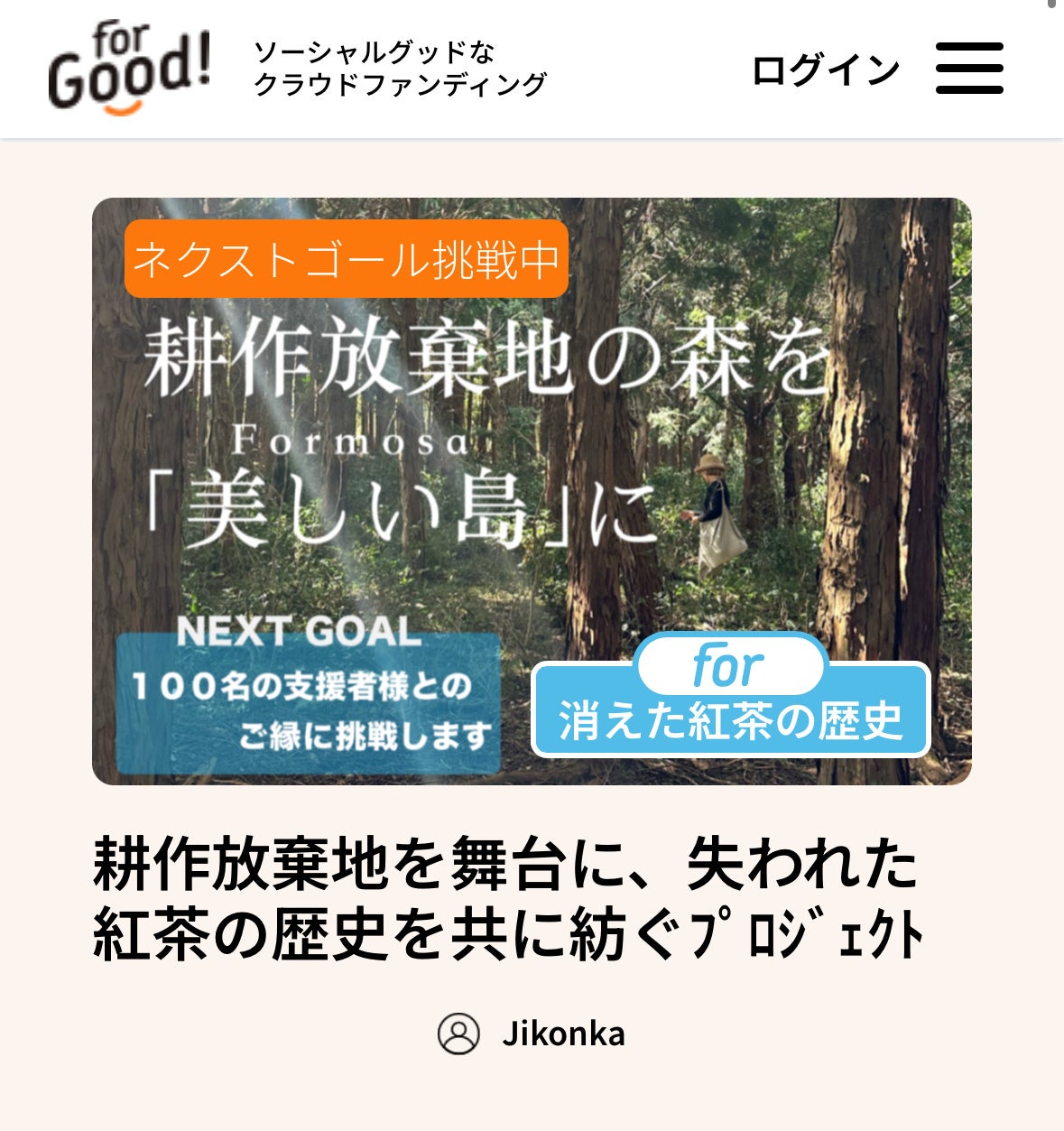今年度最初の企画として、Jikonka(三重県亀山市、代表:米田恭子)と協業し、「Formosa Project(フォルモサプロジェクト)」を3月23日(土)から始動しました。このプロジェクトは「耕作放棄地の森を、美しい島に変える」をテーマにした取り組みとなります。
