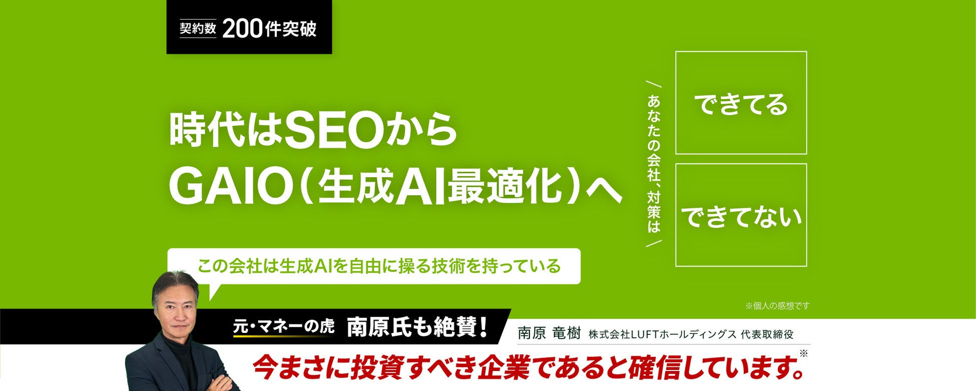 元「マネーの虎」南原竜樹氏も絶賛!生成AI時代の新SEO「GAIO」対応!完全自動マーケティングシステムの株式会社アソシエーションオフィス、FUNDINNOで株式投資型クラウドファンディング始動!