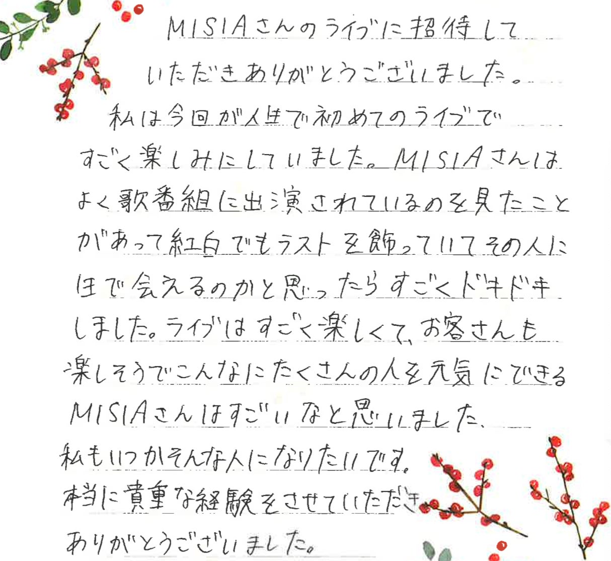 株式会社リズメディア(東京都渋谷区)は、2023年11月11日(土)から2024年3月3日(日)に開催されたMISIAの全国ツアー「25th Anniversary MISIA 星空のライヴⅫ Starry Night Fantasy」の全11会場で、子どもたちに夢へのチケットを届ける”Dream Ticket Project”として、さまざまなバックグラウンドのある子どもたち計862名をライヴに招待しました。