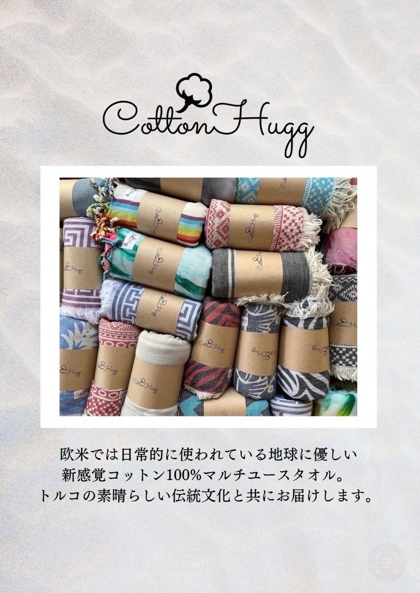 CottonHuggは日本人であるオーナーとそのトルコ人の夫がトルコタオル(ペシュテマル)の街トルコ・デニズリへ出向き仕入れを行い日本で販売しているブランドです。