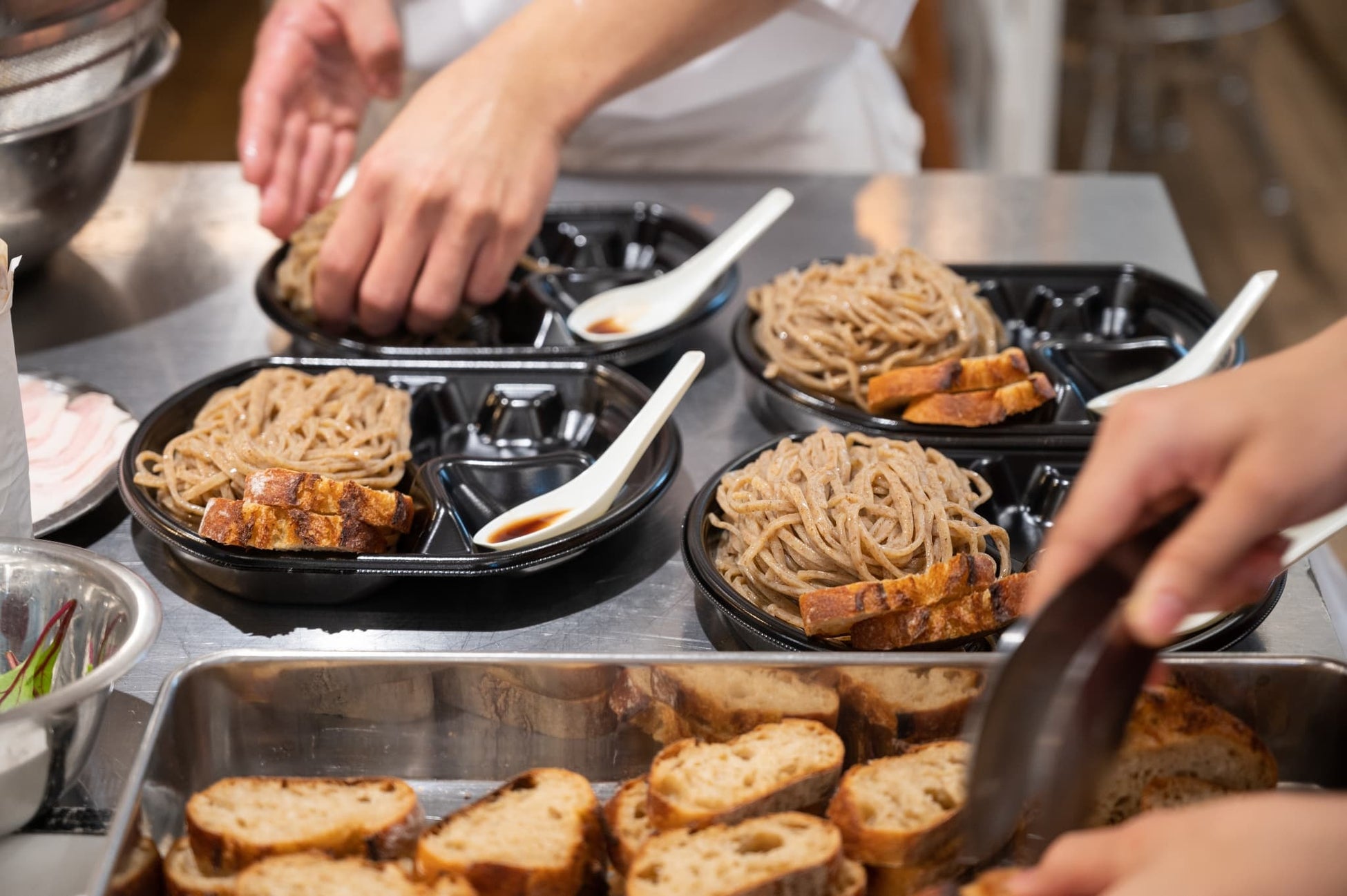 「TRYラーメン大賞」(講談社)4年連続受賞・殿堂入り。「情熱大陸」(MBS/TBS系ネット)をはじめ多数のテレビ番組にも取り上げられ全国にその名を轟かせる行列店 らぁ麺飯田商店による“新麦らぁ麺”と、国産小麦を使ったパンの先駆者でもある、東京代々木八幡の人気ベーカリー 365日、横浜の人気ベーカリー ブラフベーカリーによる“新麦パン”のコラボレーション。新麦らぁ麺に新麦パンでつくる2種のワンタン(通称ワンパン)を添える1杯は、麦フェスでしか味わえません。