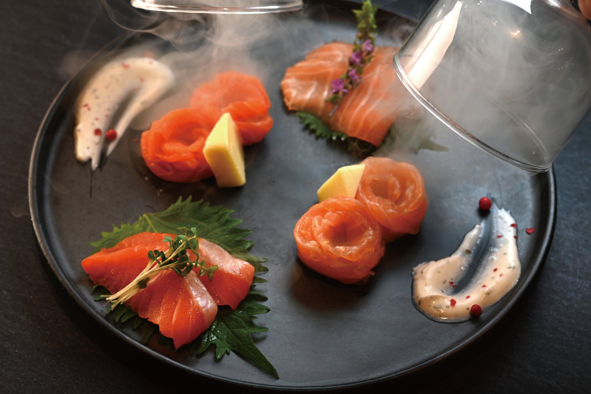 「刺身」と「スモーク」でお召し上がりいただける贅沢な一皿。