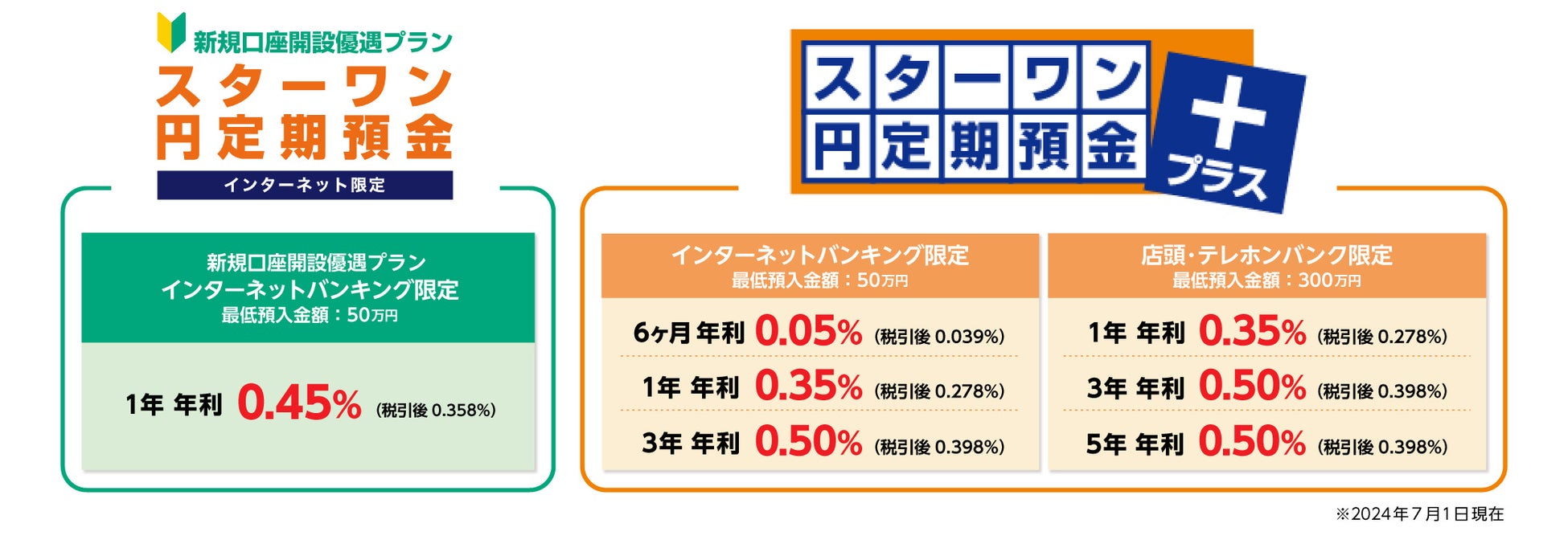 インターネット限定 新規口座開設優遇プラン スターワン円定期預金について