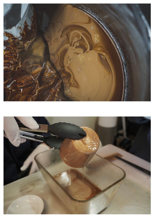 漆は、漆器や文化財建造物のみならず、伝統的な染織文化にも欠かせない材料でした。防水性や染料に対する耐薬品性もあることから、着物の生地に柄や文様を染めるための型紙の補強剤として用いられてきました。当社の協業パートナーの西陣の漆屋「佐藤喜代松商店」も、かつては伝統工芸である「伊勢型紙」の一大生産地に出張所があり、友禅型紙用の漆をメインに製造していました。本製品はその漆技術から着想を得て誕生しました。