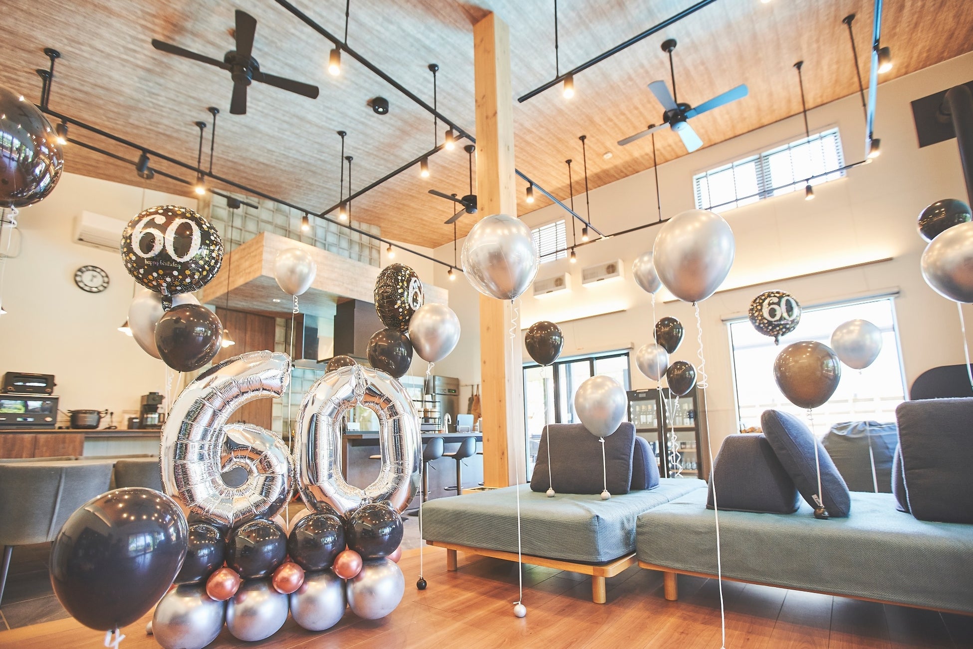 バルーンで皆さまの特別な日のお手伝いをいたします。ウェディング、還暦やお誕生日などの各種お祝い、テーマに沿った盛大な貸切スペース全体の装飾も可能。この日この時だけの唯一無二のバルーン空間で一生の思い出に残る記念日を、