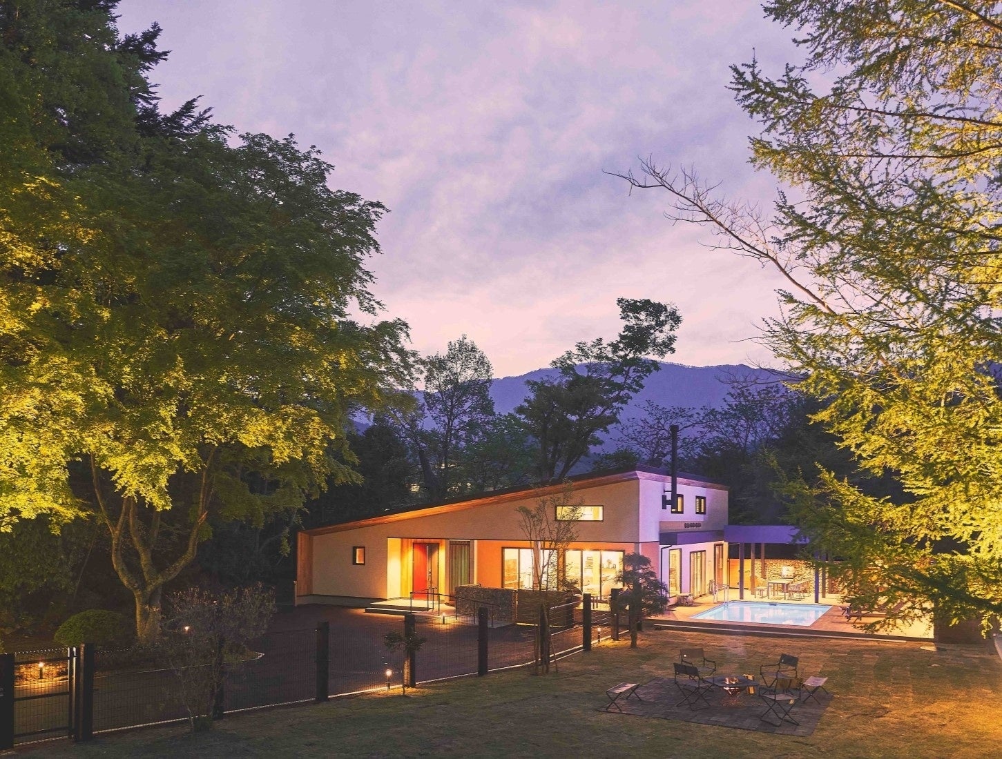 2023年GWに開業した富⼠⼭を真正⾯に臨む、1⽇1組限定の宿泊施設「ヴィラ・セゾン・フジ」。