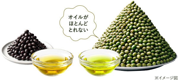 早摘みした緑オリーブには、オイル分がほとんど含まれてないため、黒い熟したオリーブと比べて、同量のオイルを得るためにはたくさんのオリーブが必要となります。