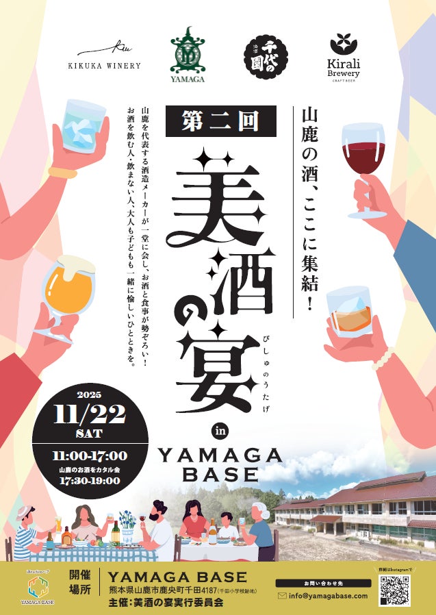 2025年11月22日(土)、熊本県山鹿市の「YAMAGA BASE」にて、地元の酒造4社が集う特別イベント「第二回 美酒の宴 in YAMAGA BASE」を開催いたします。