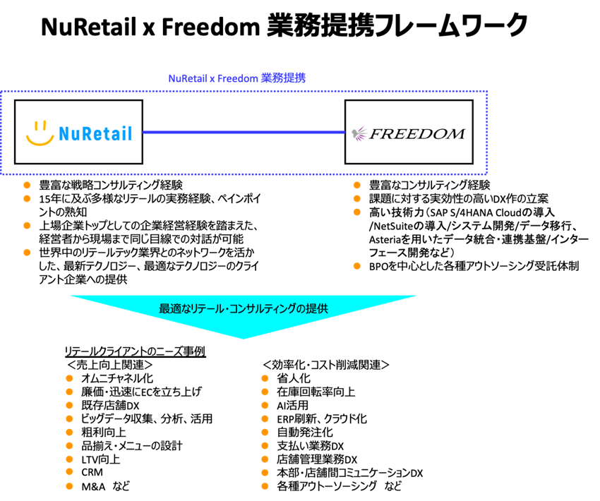 リテールテックスタートアップ NuRetailとコンサルティング・システム受託開発のFreedomの業務提携のお知らせ