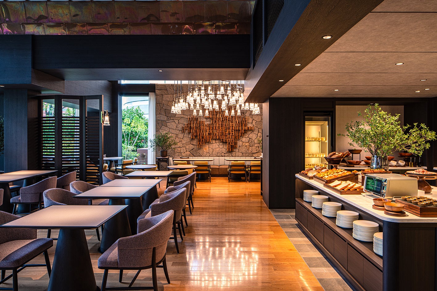 「グランド クラブ」は今回のリニューアルで、旧ラウンジからエリアを拡張し、レセプション、ダイニングエリア、ラウンジエリア、ワークスペース、テラスエリアで構成された、お客様の多様なニーズや過ごし方を叶える空間に生まれ変わりました。ガーデンヴィラをイメージし、室内にいても庭園の緑を感じられるよう設計された新しい「グランド クラブ」では、都会の喧騒を忘れ、ゆったりとお寛ぎいただけます。また、今回のリニューアルでは朝食やカクテルアワーもパワーアップ。ライブキッチンを新設し、出来立ての料理を提供するなど、ワンランク上の食体験を提供いたします。