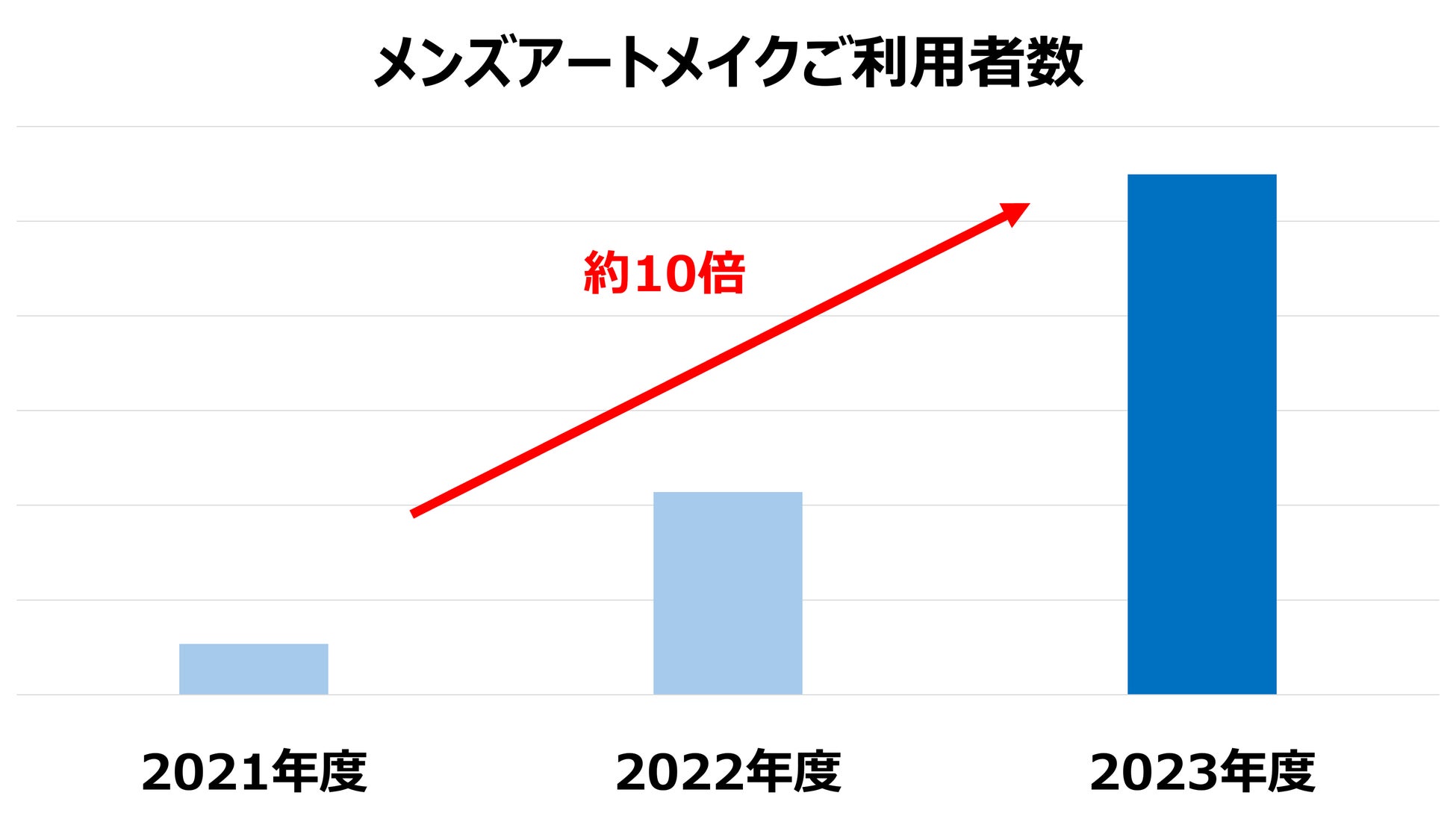 近年の男性化粧品の市場拡大を受け、男性の美容意識の高まりが影響し、男性専用の美容医療クリニックであるD-ISMクリニックでのメンズアートメイクの売上金額が2021年4月から2024年3月までの3年間で約10倍に伸長いたしました。男性が自身の外見を整えることへの投資が一般化し、社会的にも以前より男性美容が受け入れられるようになってきていることが考えられます。