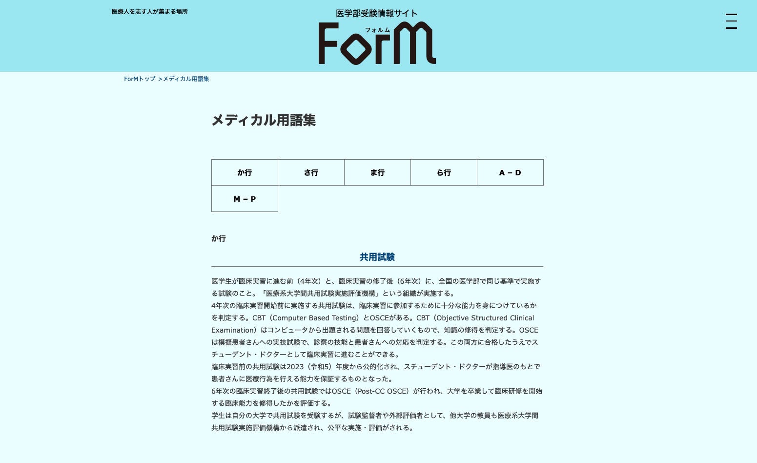 医学部受験生にとって知っておきたい用語(臨床実習や共用試験、アクティブ・ラーニング、インフォームド・コンセントなど)、医学部受験に有益な用語などを順次発信していきます。