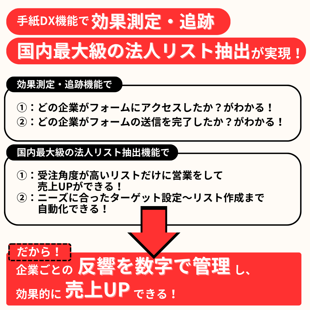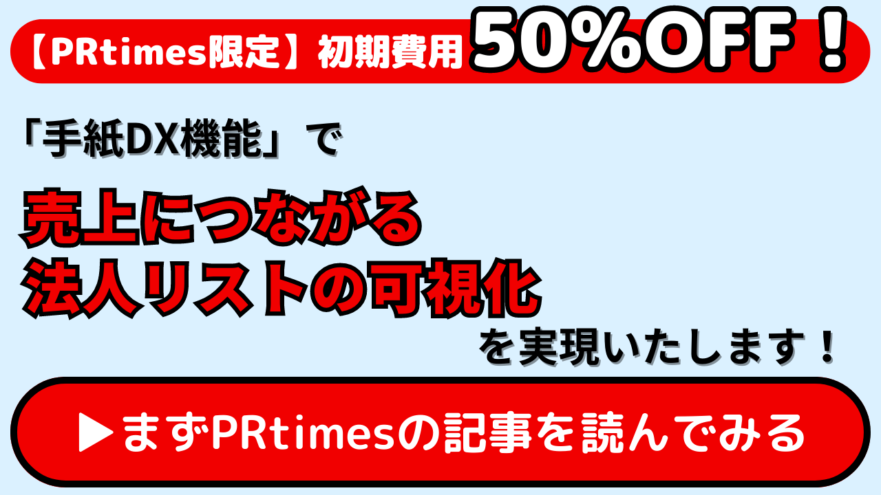 【初期費用50%OFF!】「手紙DX機能」で売上につながる法人リストの可視化を実現いたします!