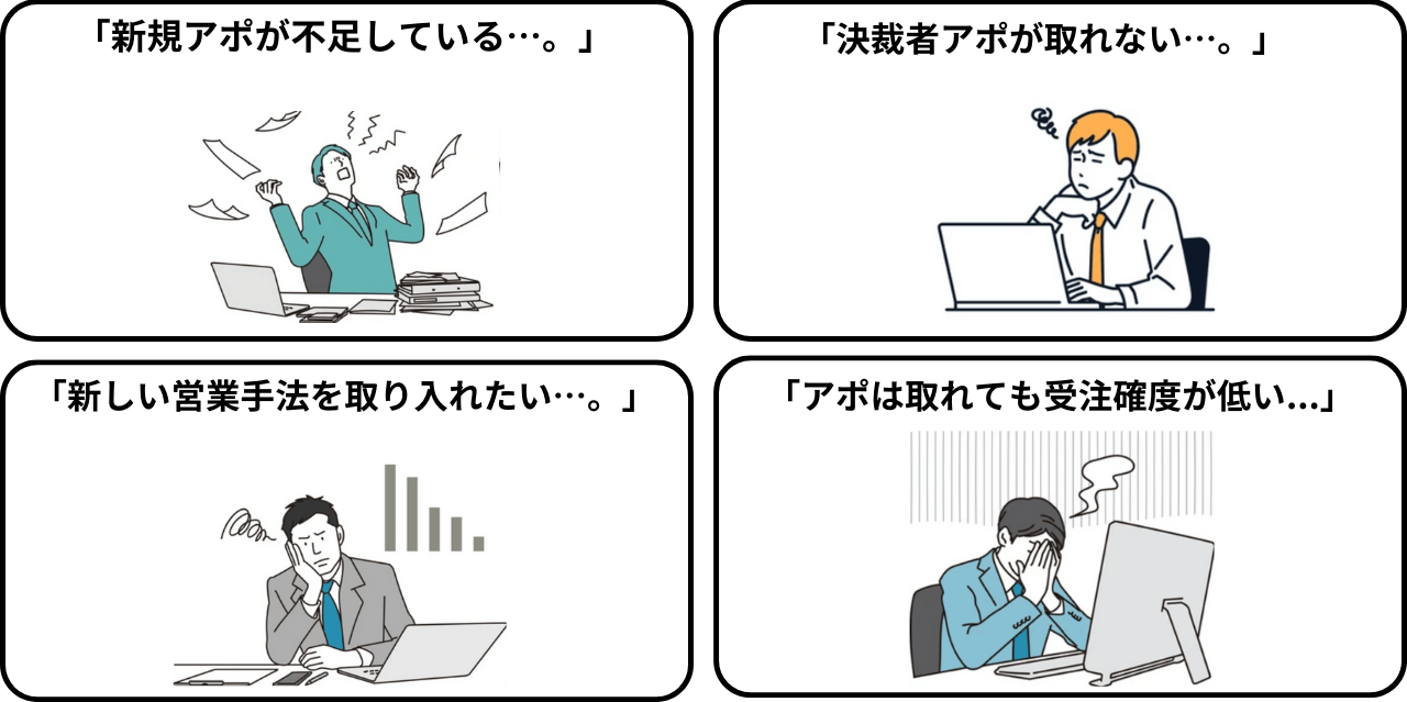 以上の特徴から、新規販路の開拓や決裁者アポの獲得、受注確度が高いリードを獲得したい企業様におすすめです。