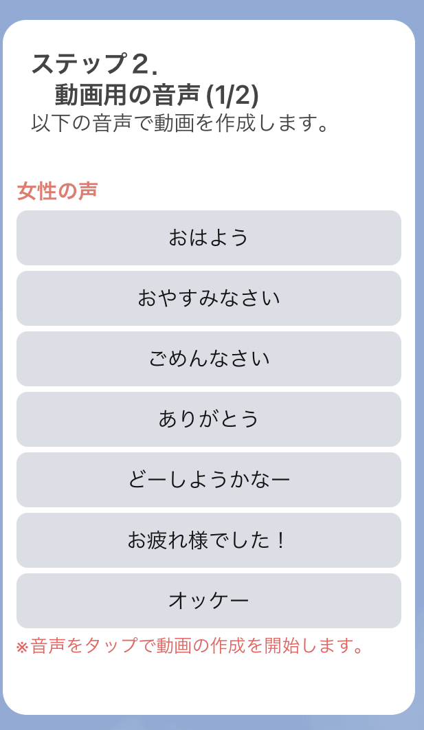 現時点では動画にできるメッセージも限定的ですが、ここのラインアップは拡充予定です。