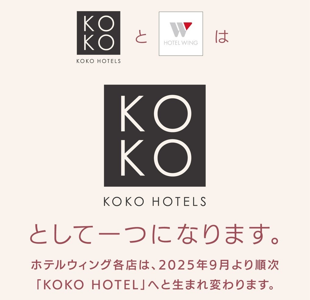 「KOKO HOTELS」と「ホテルウィングインターナショナル」が2025年9月以降、ブランド統合へ―
