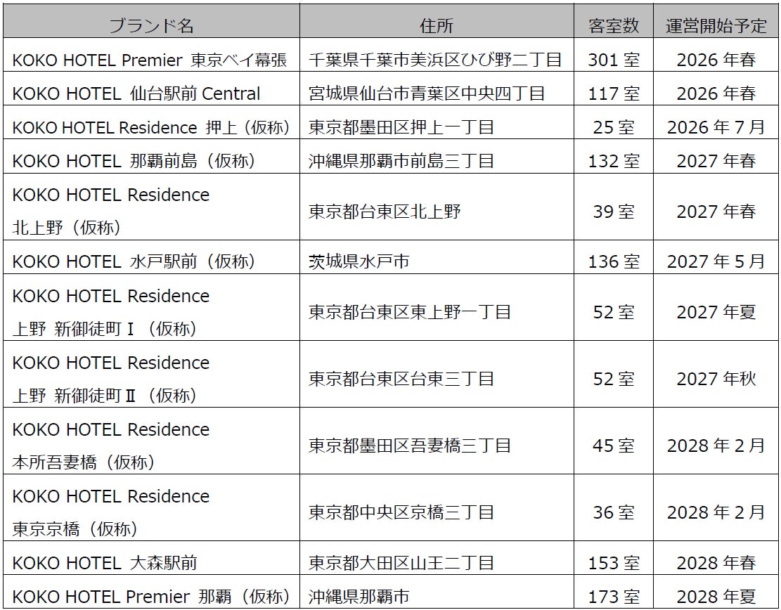2025年9月より「ホテルウィングインターナショナル」「テンザホテル」として運営されている各施設は順次「KOKO HOTELS」のサブブランドへと変更します。(詳細は別紙参照)
