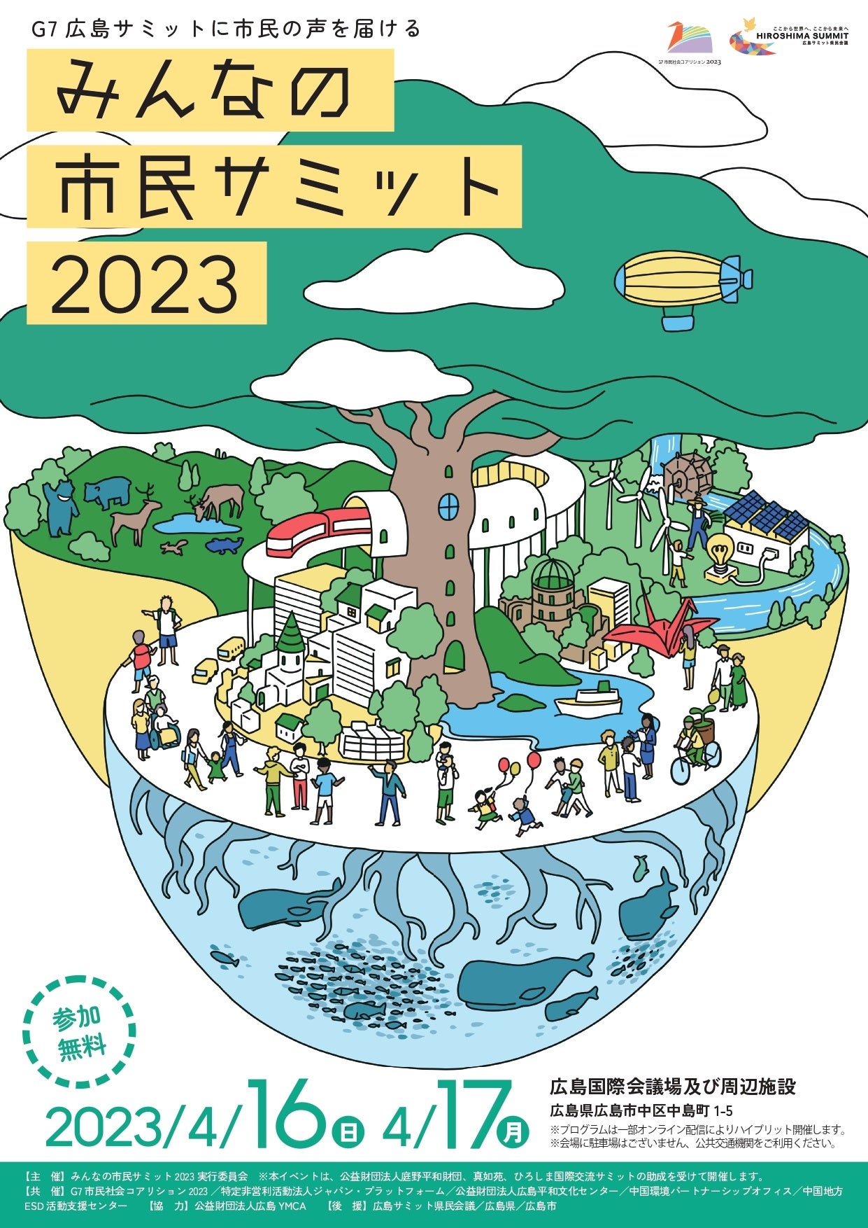 2023年4月16日(日)、17日(月)に広島市内の広島国際会議場等において『みんなの市民サミット2023~G7広島サミットに市民の声を届ける~』が開催されます。