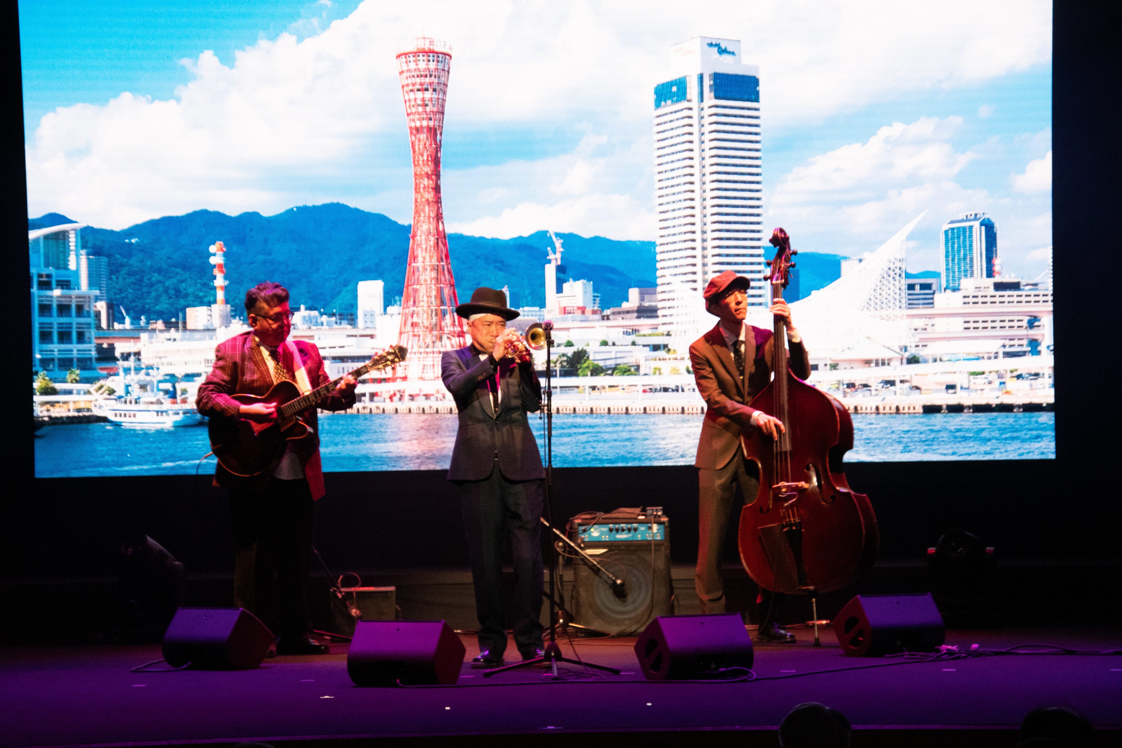 第2部では、「第1回神戸賞 授賞式」を開催いたしました。約300名のご来場者を前に、まず、ジャズアーティストであるMITCHさんによるオープニングLIVEを実施。厳かな雰囲気の第1部とはがらりと印象が変わり、煌びやかな演出で式の開幕を彩りました。