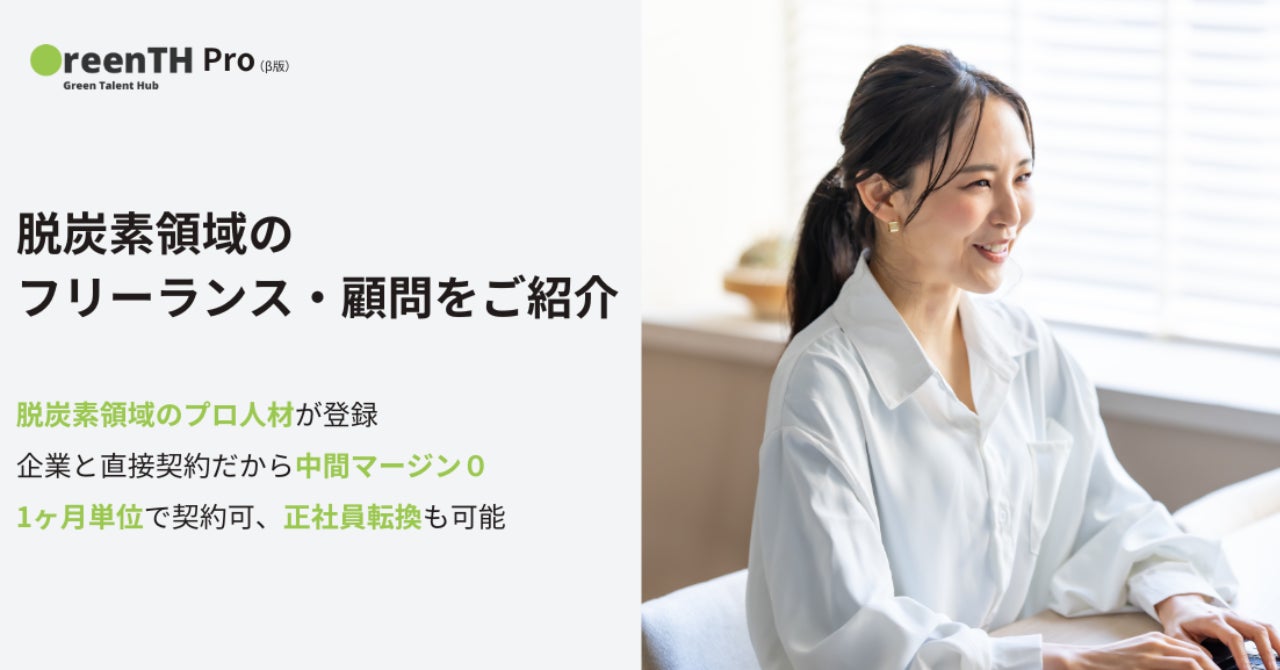 グリーンタレントハブ、脱炭素領域のフリーランス・顧問をご紹介する「グリーンタレントPro」β版をサービス提供開始