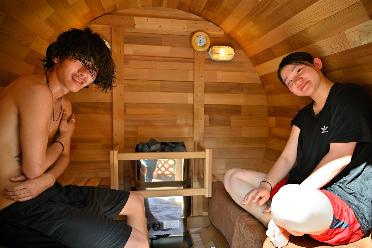 バレルサウナでは、じんわりと体を温めるロウリュも体験でき、しっかりと汗をかいた後は、そのまま目の前の清流へダイブ。自然と一体になるような開放感と爽快感で、ここでしか味わえない“ととのい”体験を提供します。