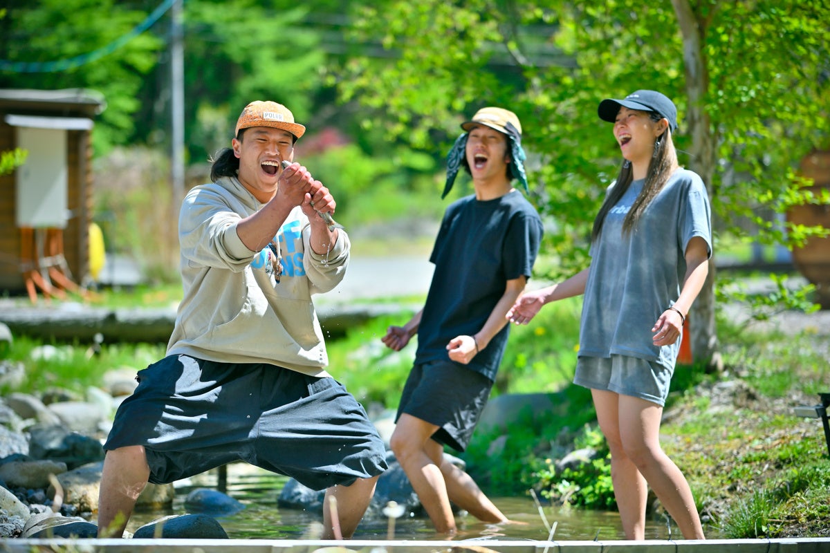 清流ダイブで“ととのう”!ドッグラン新設&釣りや魚の手づかみ体験も大好評、夜は自分で獲った魚をBBQで堪能。