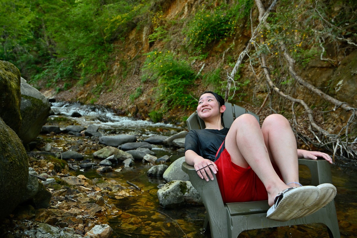 敷地内には、川の目の前に設けられたリクライニングチェア付きの整いスペースも完備。木々の揺らぎや川のせせらぎに癒されながら、『森林浴を楽しむ贅沢な“外気浴”』で、深いリラックスタイムをお過ごしいただけます。水着やポンチョのレンタルもあり、手ぶらでも気軽に楽しめるのも魅力です。