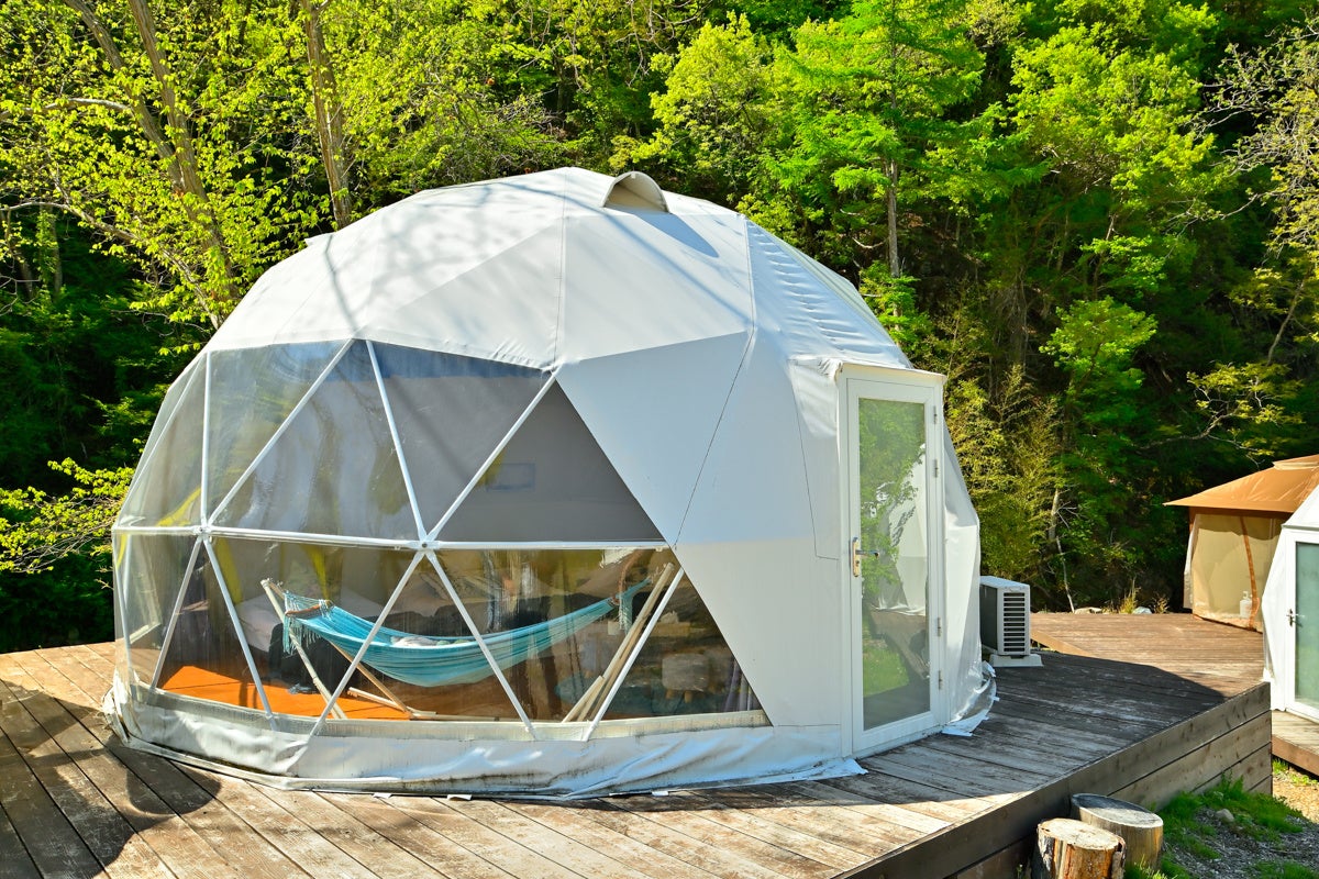 清流と山々に抱かれた、リバーサイドのドーム型グランピング